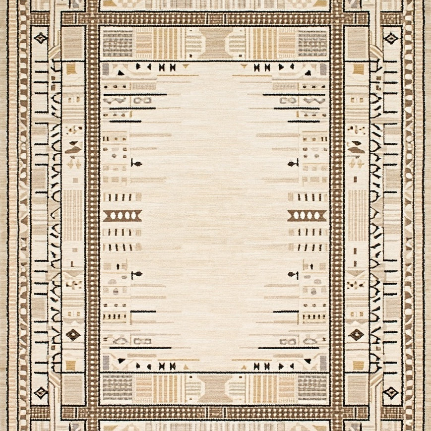 Bordered Accent Area Modern Low Pile Beige(Beige)