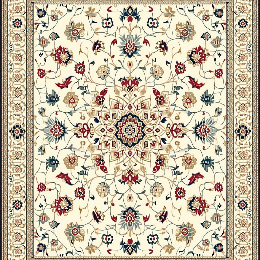 Stylish Round with Interlaced Lattice and Floral Motifs(Beige)