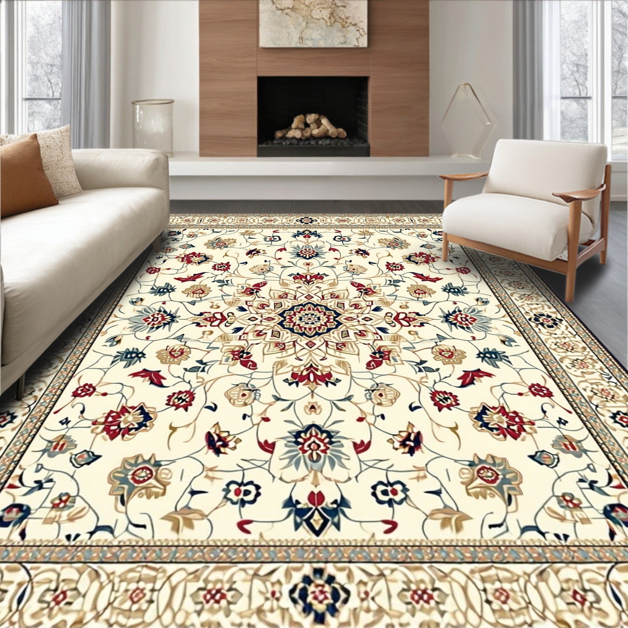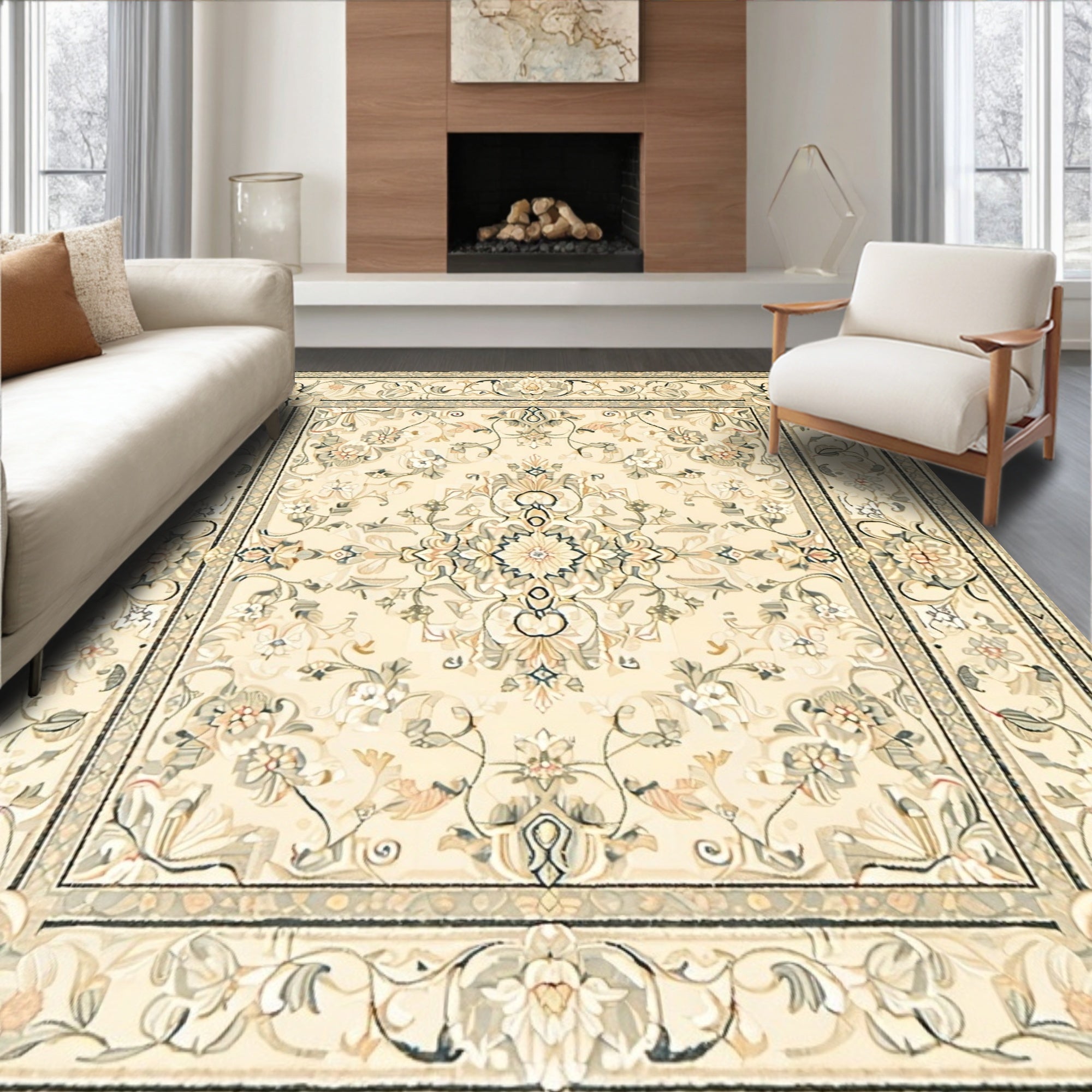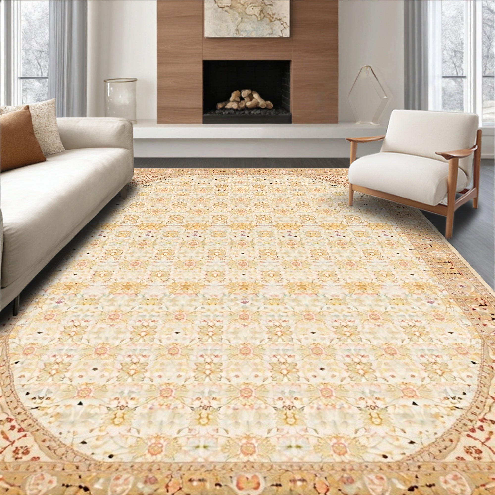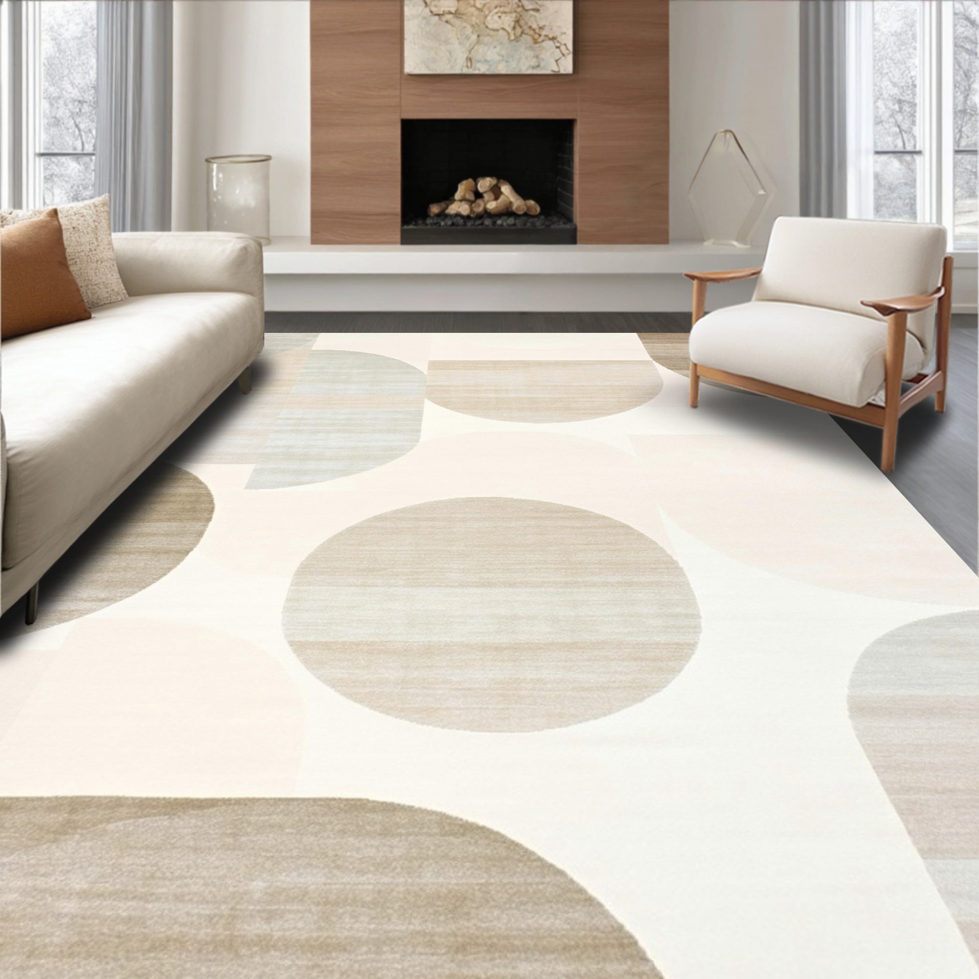 Contemporary Area with Symmetrical Grid and Minimalist Detailing(Beige)