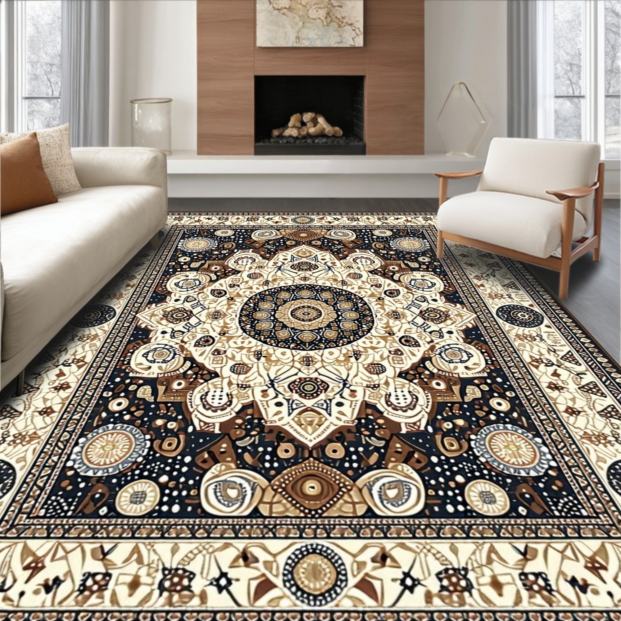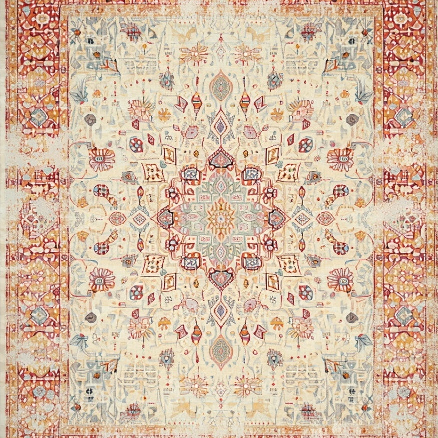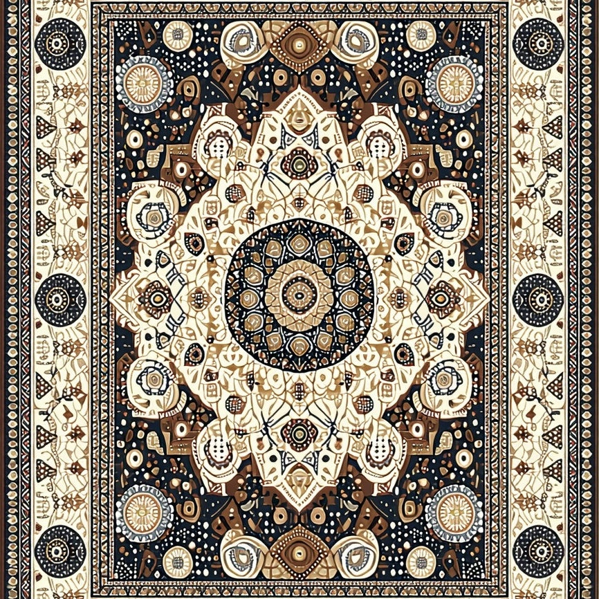 Artisan Medallion Area Embellished With Modern Geometric And Floral Layers(Beige)