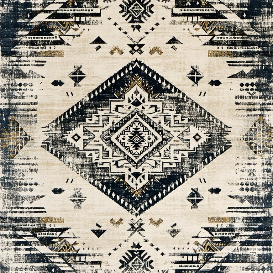 Geometric Southwestern Area with Elegant Vintage Style Motifs(Beige)