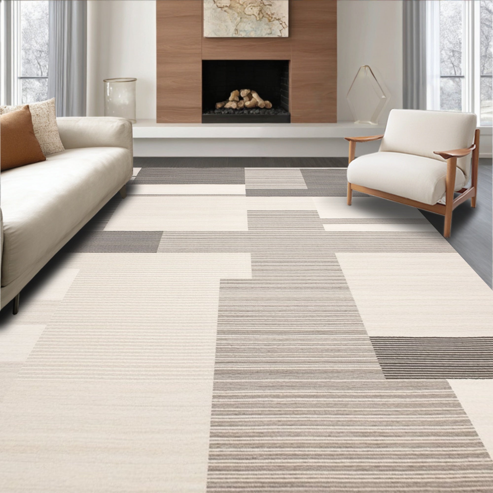 Generous Beige Weave Area Sophisticated Modern Abstract Stripe(Beige)