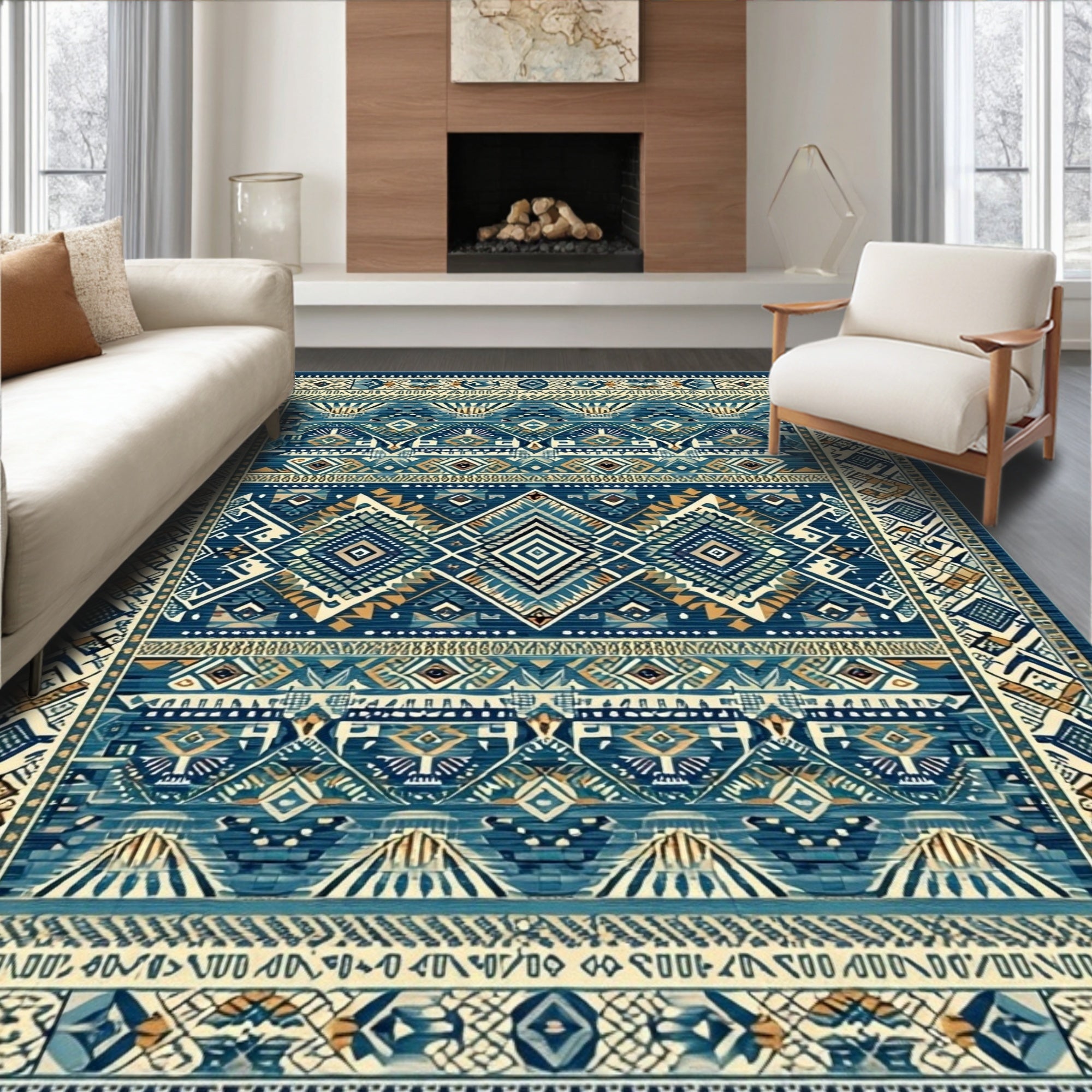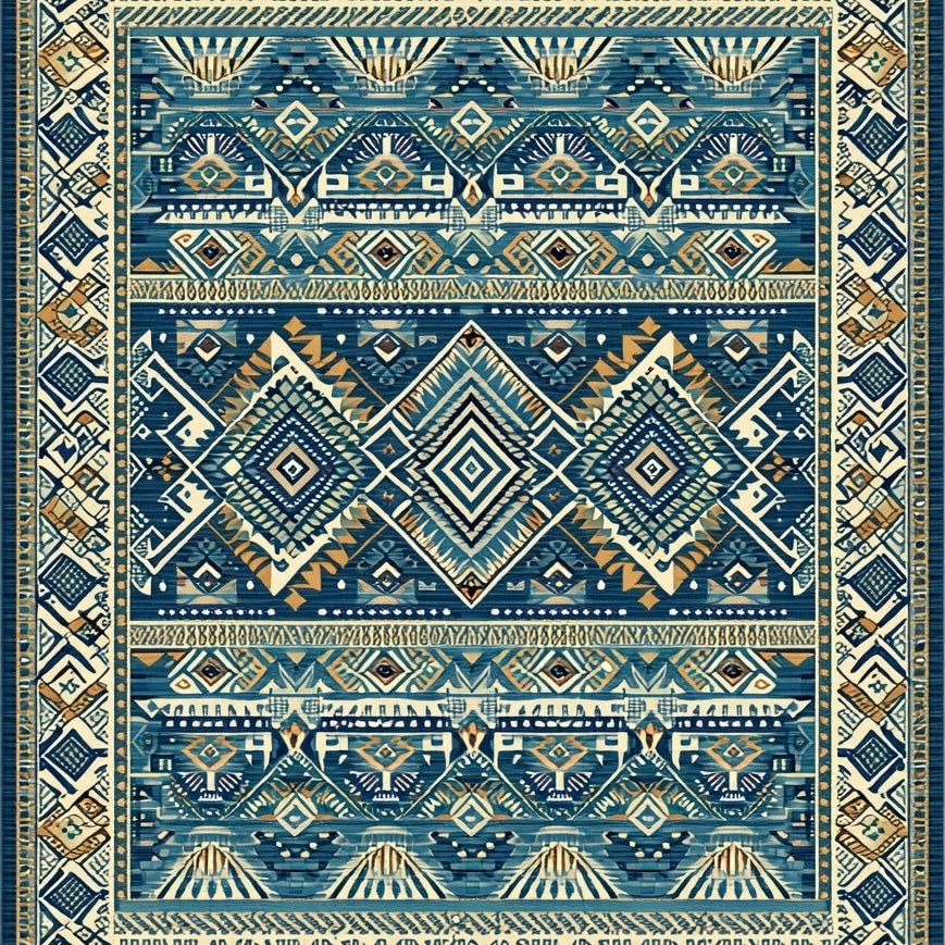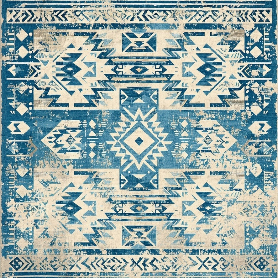 Tribal Geometric Southwestern Area with Blue and Beige(Blue)