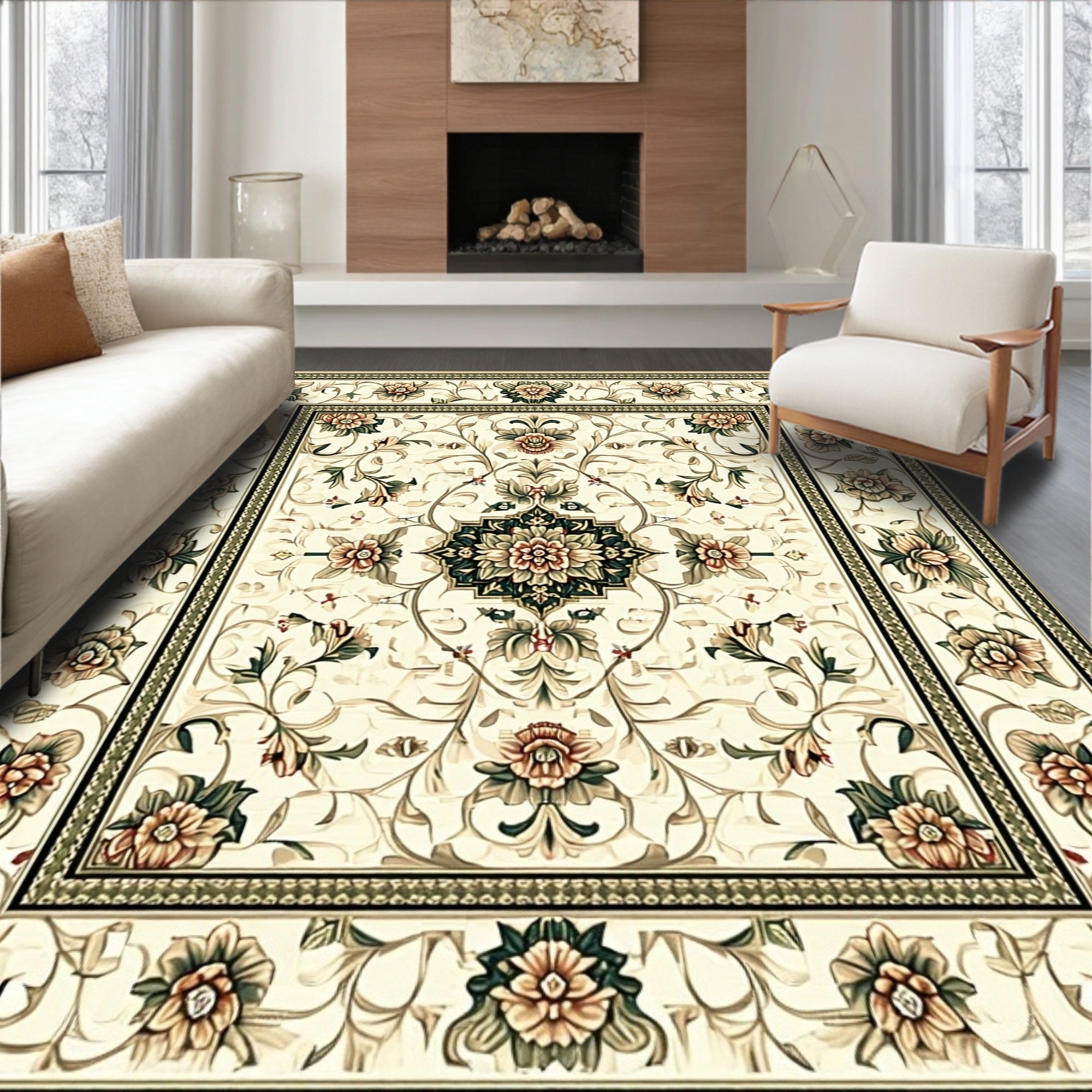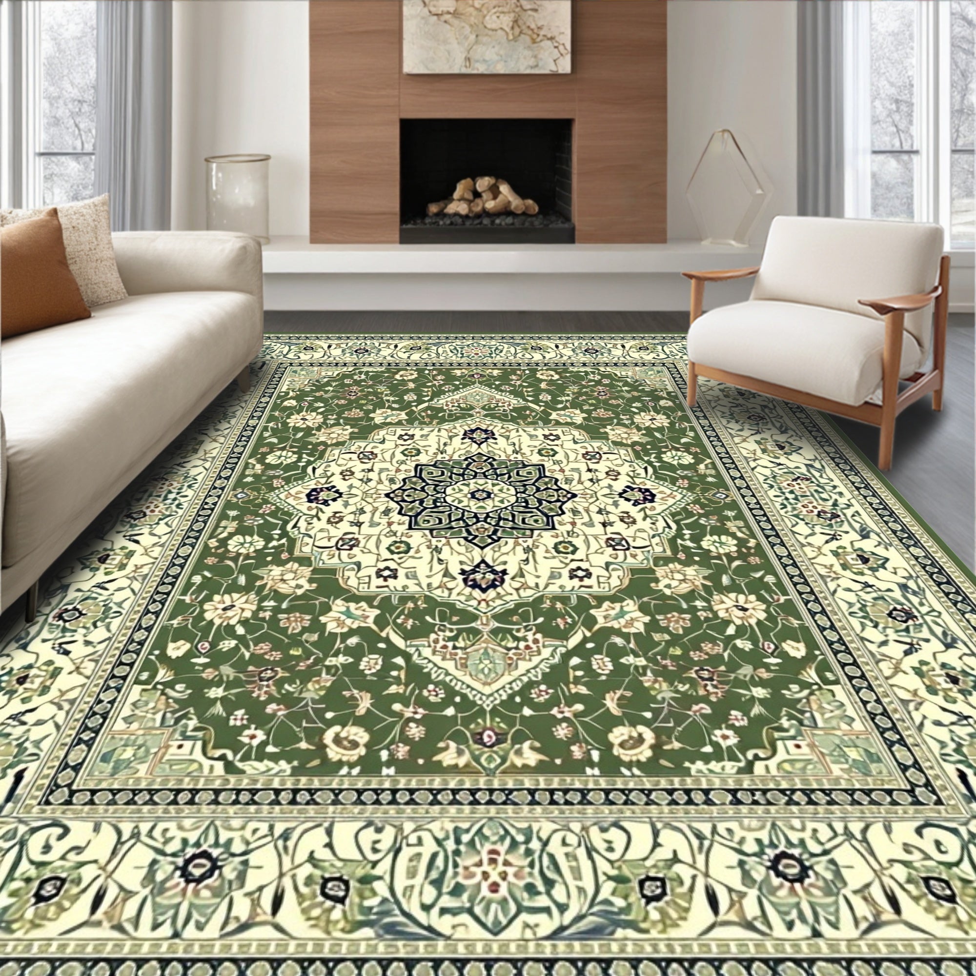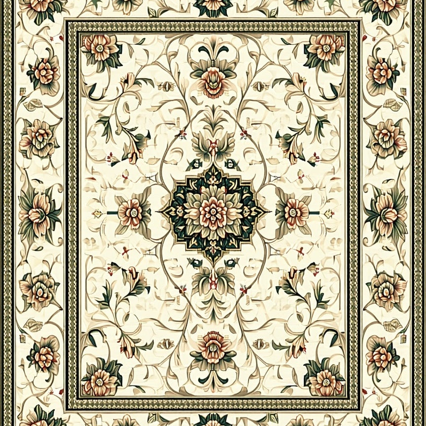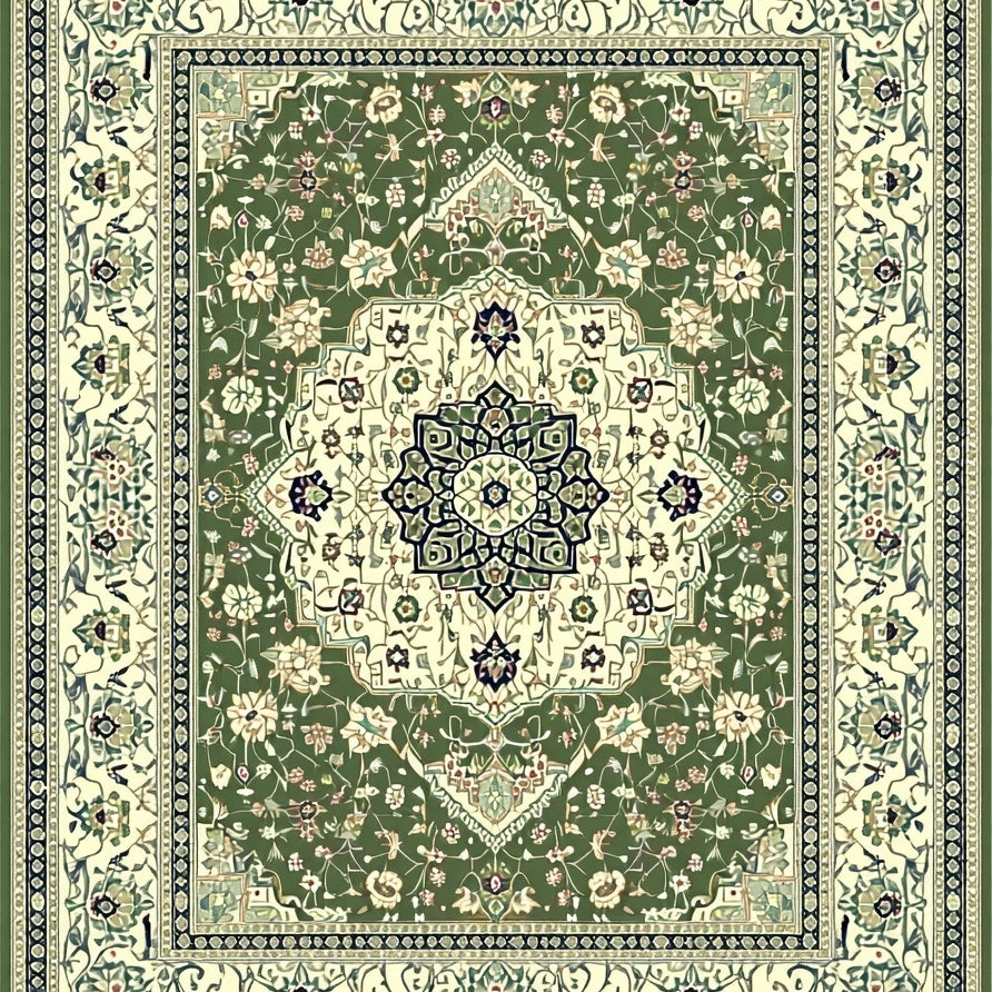 Elegant Rectangular Featuring Timeless Olive and Cream Medallion Design(Green)