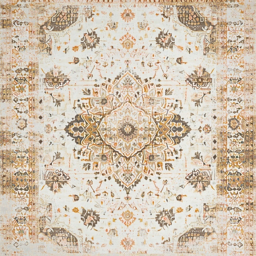 Elodie Collection Elegant Medallion Area with Distressed Vintage Charm(Beige)
