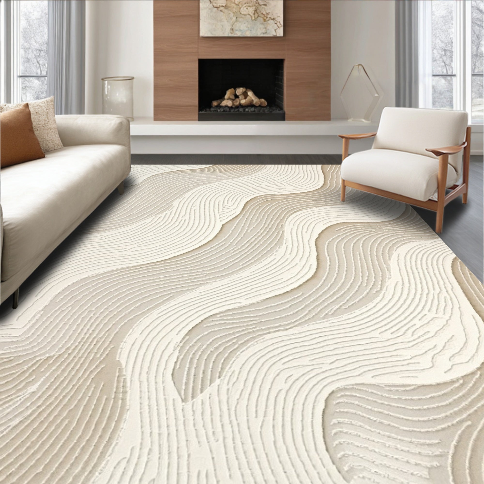 Modern Geometric Area Neutral Tones Durable Home(Ivory)