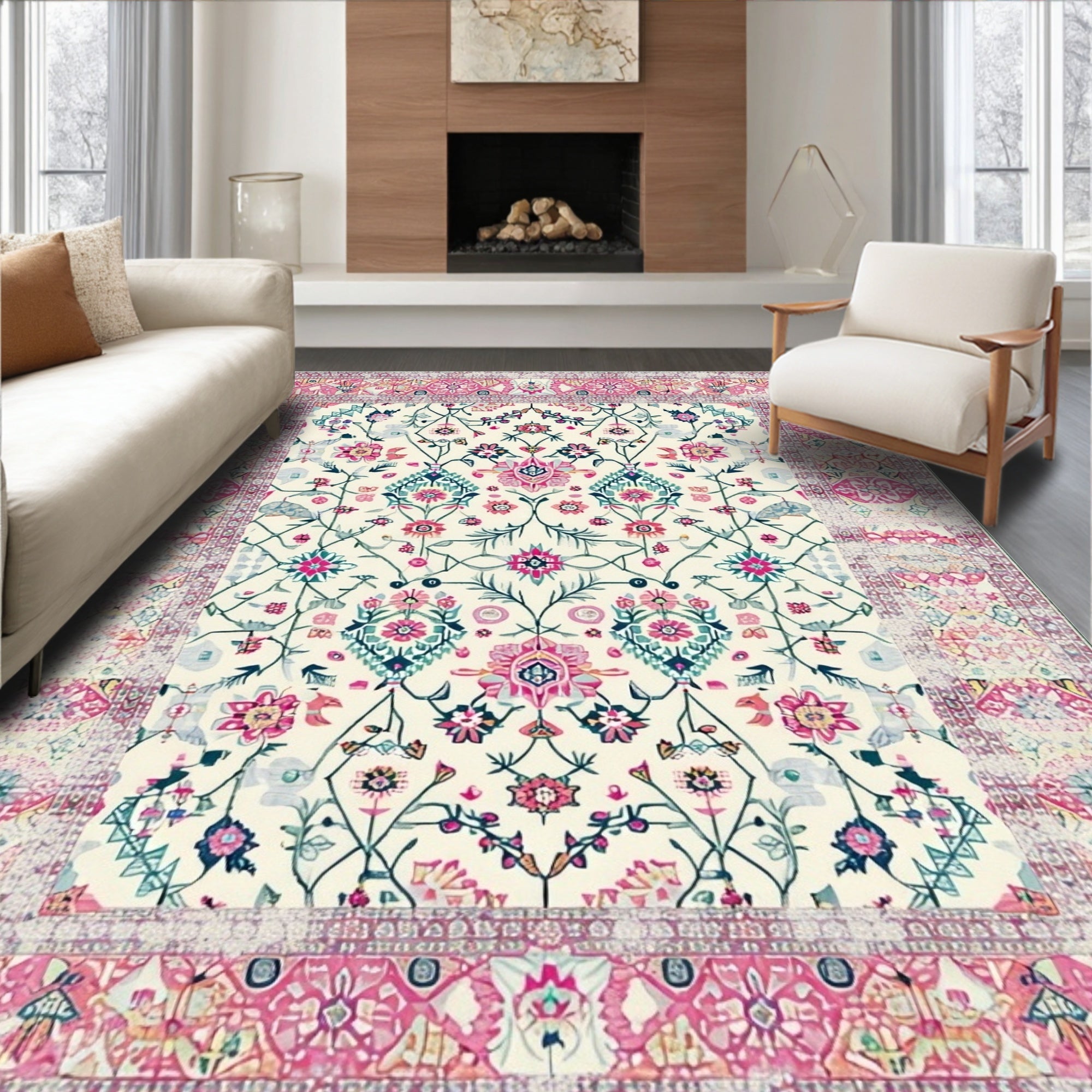 Chic Beige Botanical Whisper Delicate Floral Bloom Area(Beige)