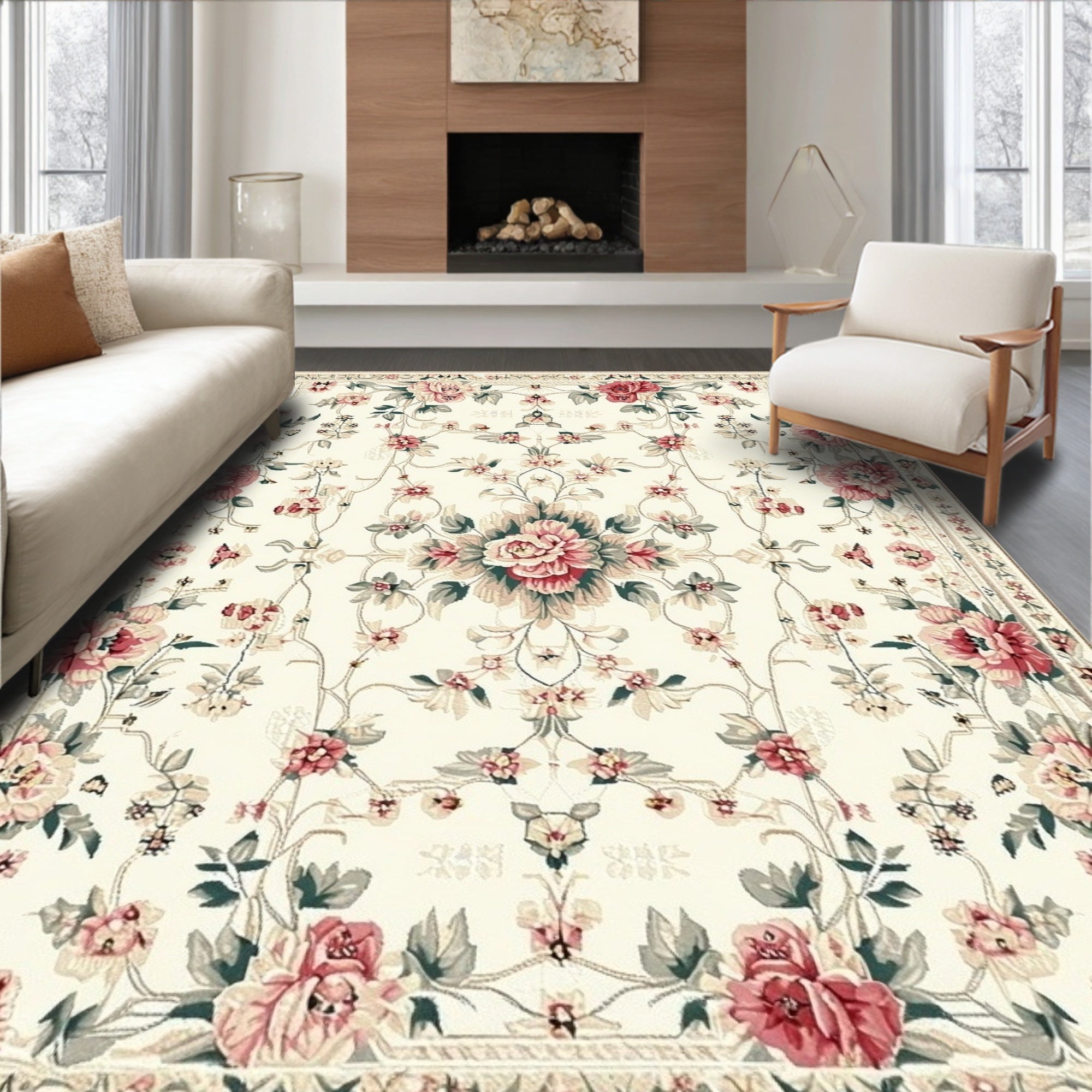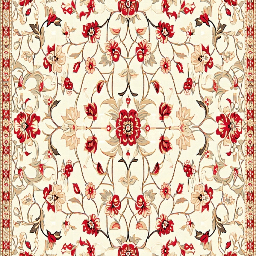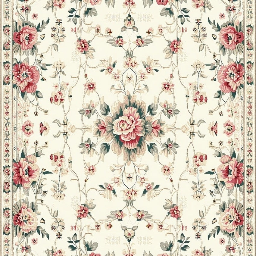 Boho Chic Floral Area Non Slip Kid Safe Low Pile(Beige)