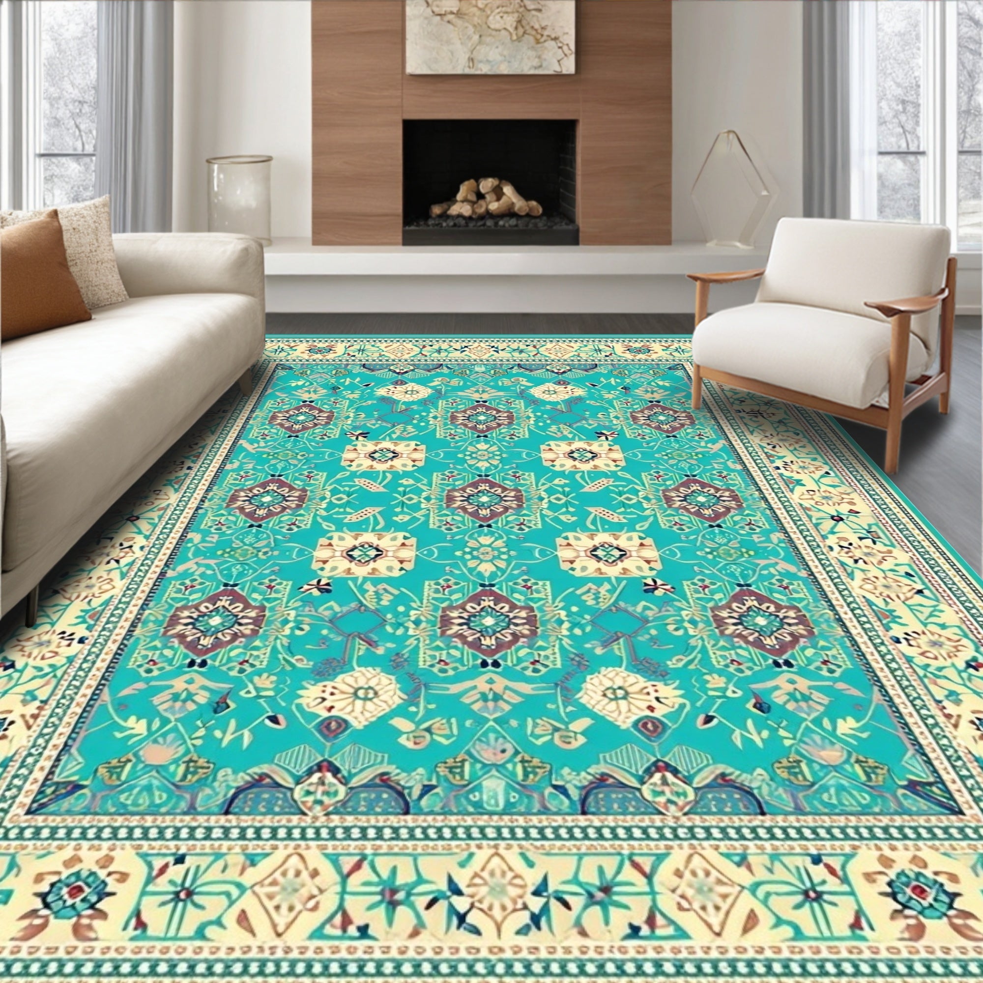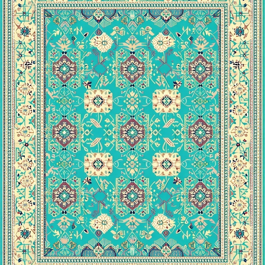 Elegant Turquoise Beige Geometric Area(Beige)