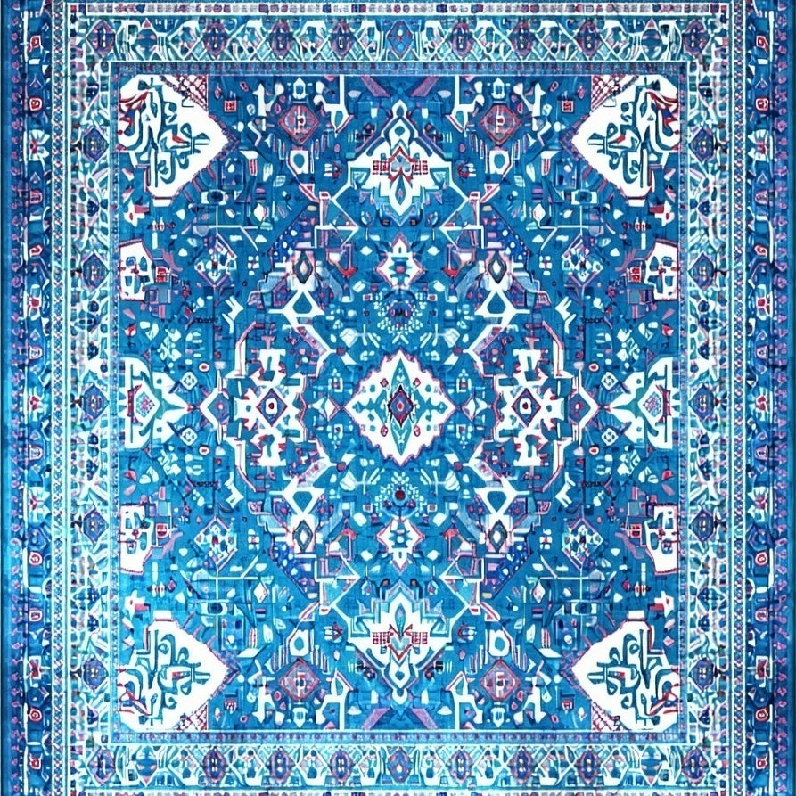 平織 tribal 地毯 精緻幾何圖案 時尚家居地毯(Blue)
