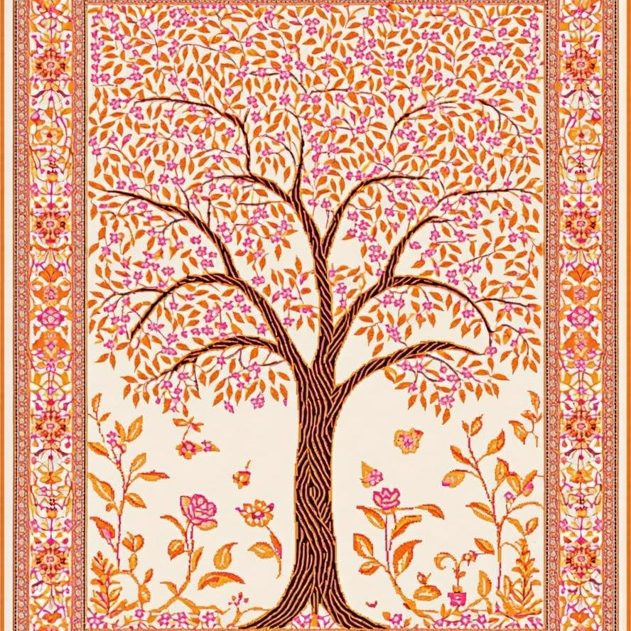 Vibrant Floral Tree Motif(White)