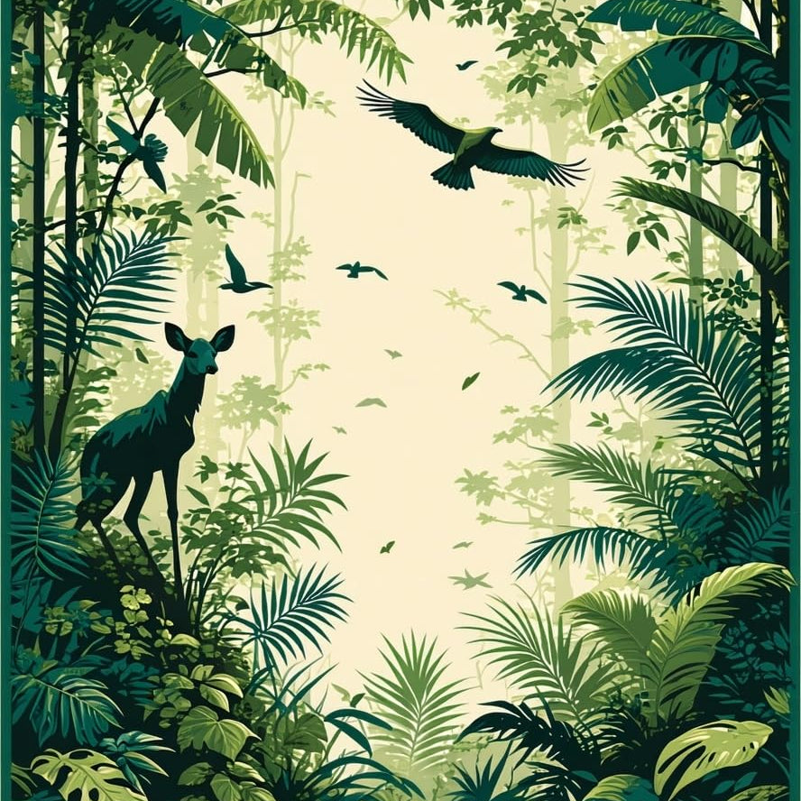 Rustic Botanical Jungle Scene(Green)