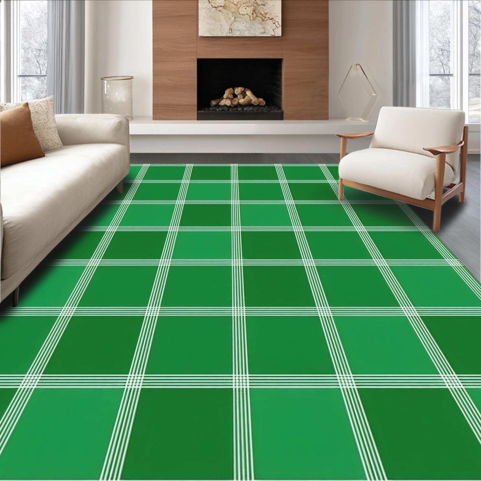 Chic White and Green Plaid(Green)