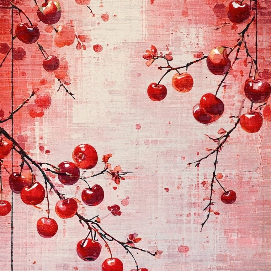 Cherry Ribbon Bowknot and Red Fruit Seamless(Red)