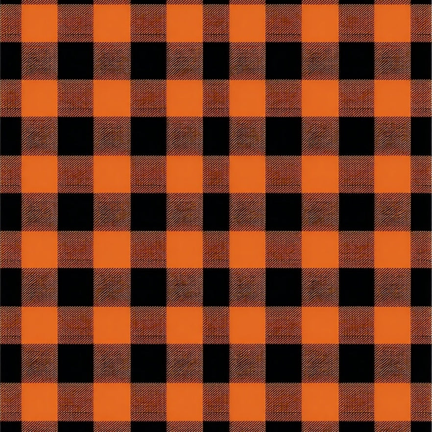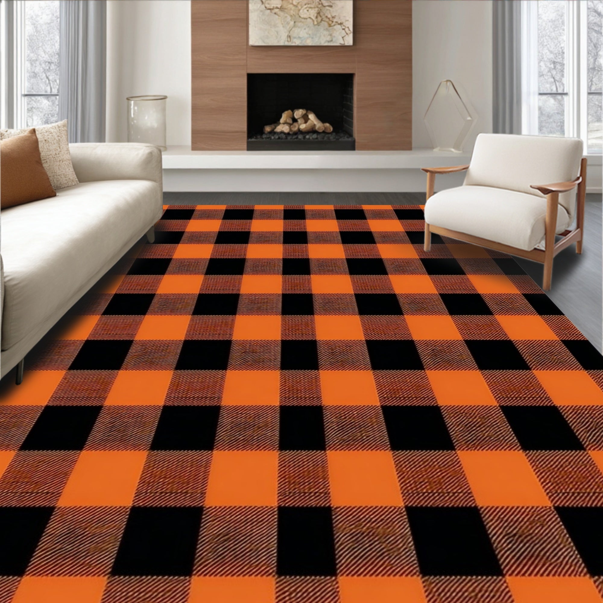 Halloween Plaid Area Rug Spooky Black & Orange Carpet with Pumpkin Design(Orange)