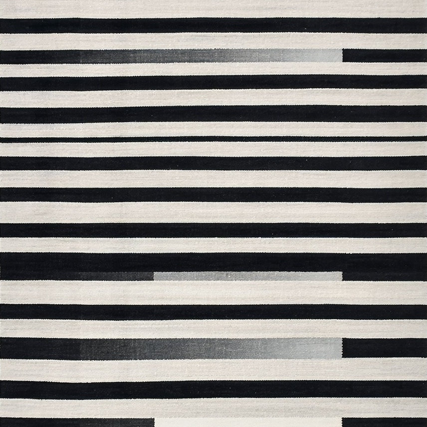 Ink & Linen Stripe Woven Graphic Linear Art Floor Mat(Black)