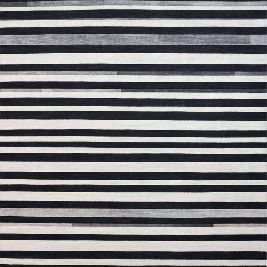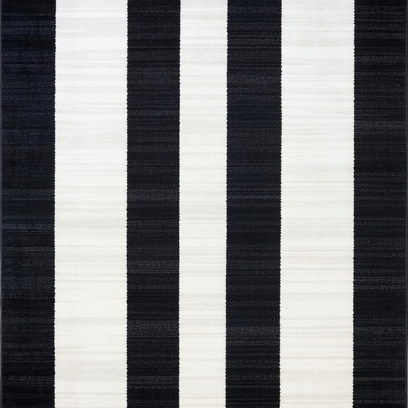 Graphic Striped Black and White Low Pile Floor Covering(Black)