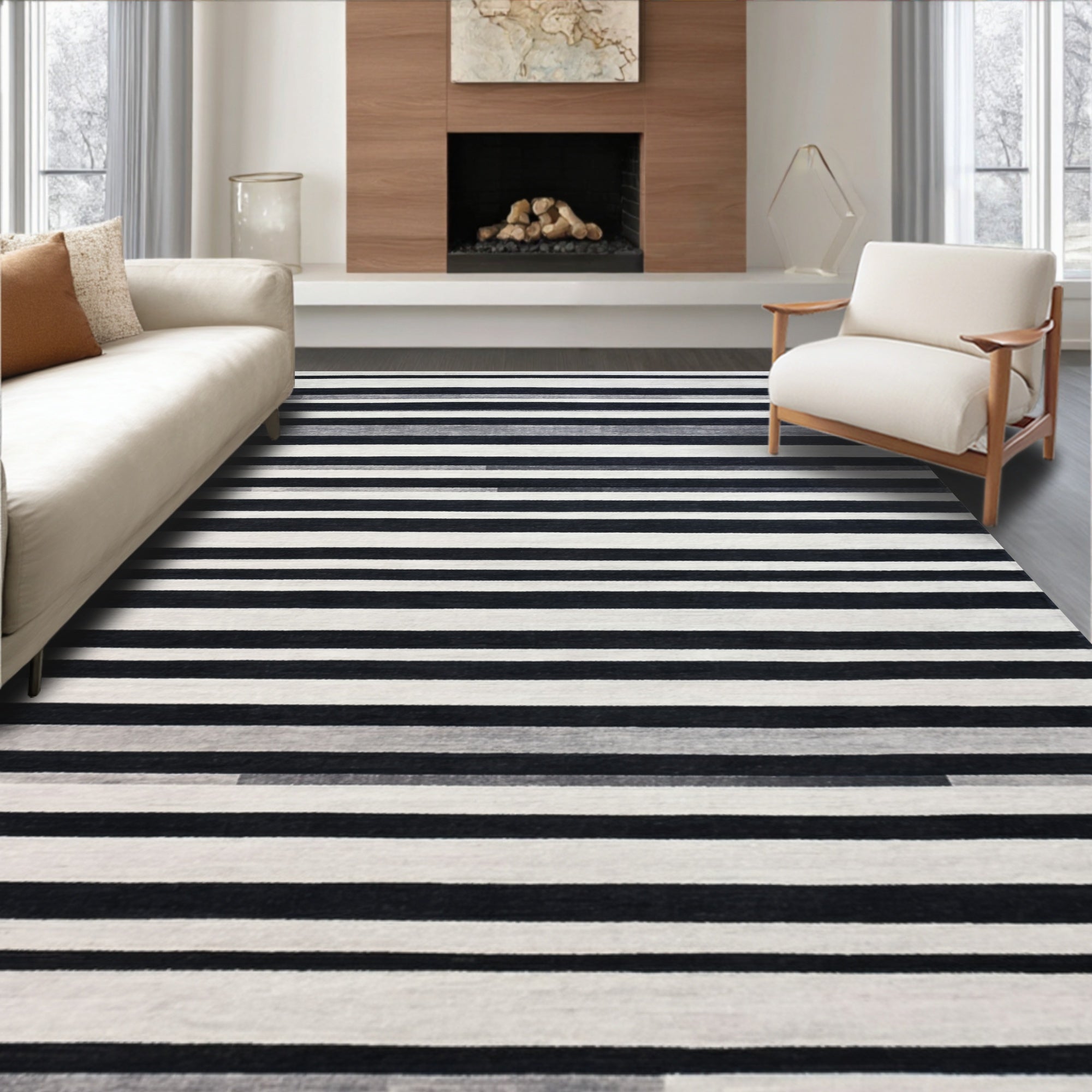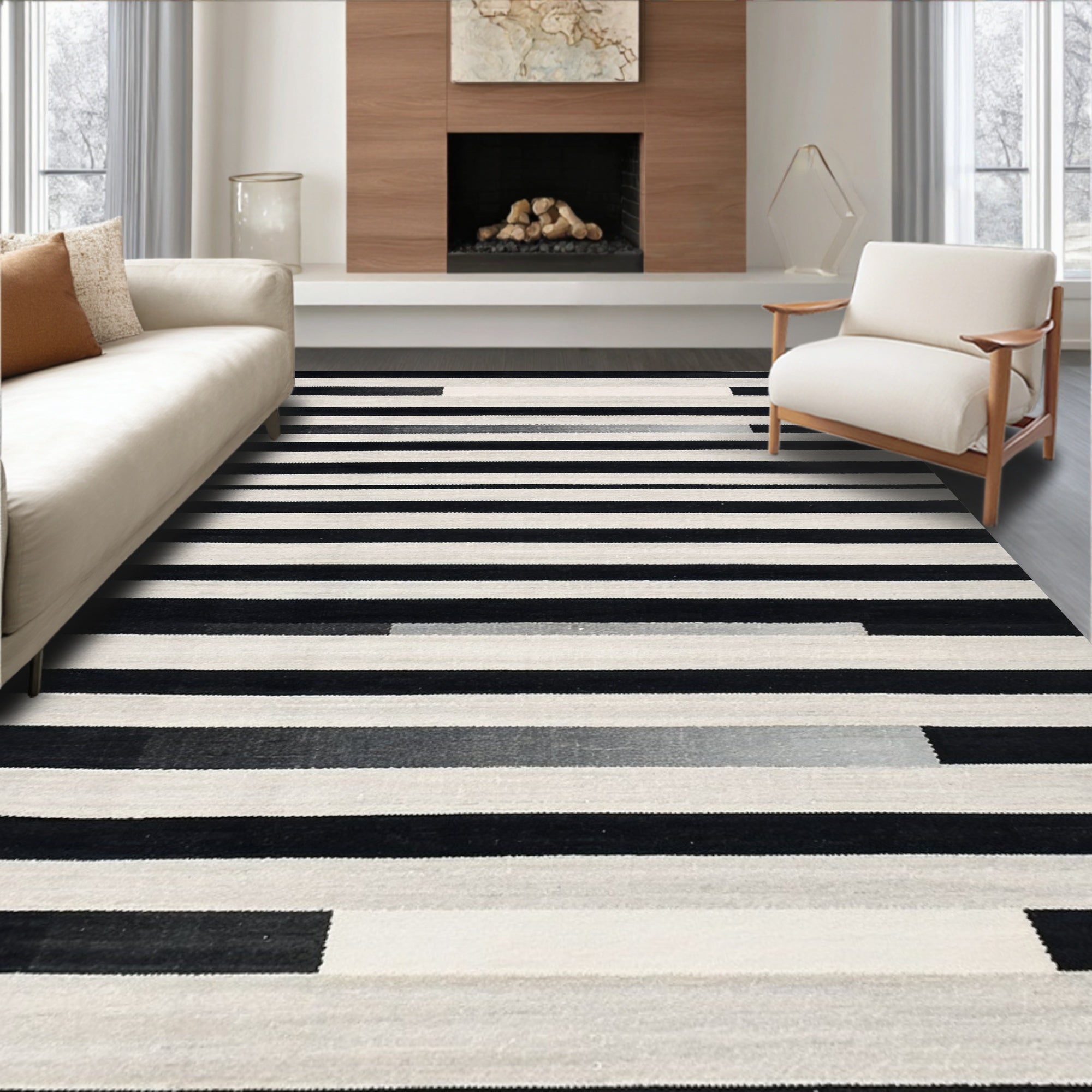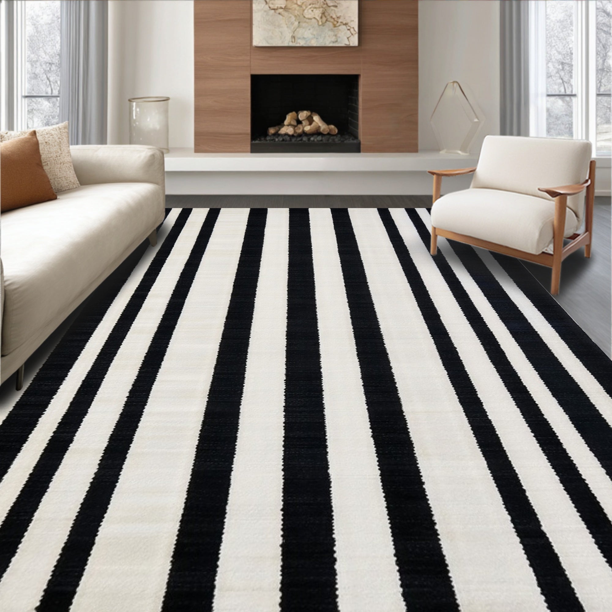 Bold Monochrome Striped Area for Versatile Decor Accents(Black)