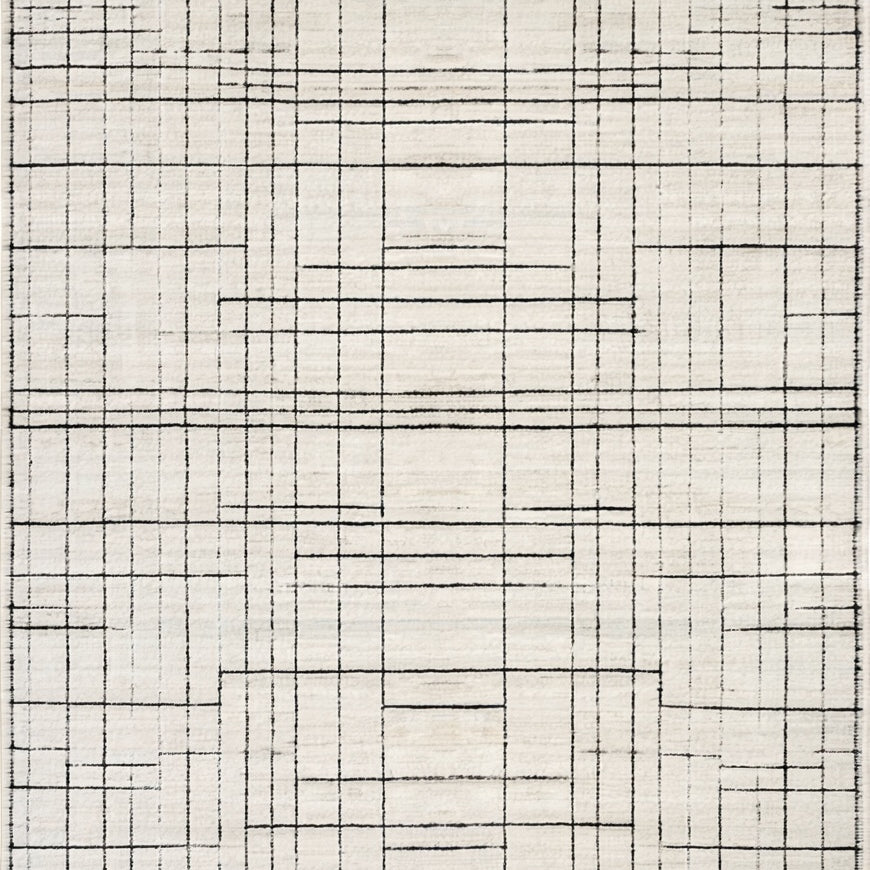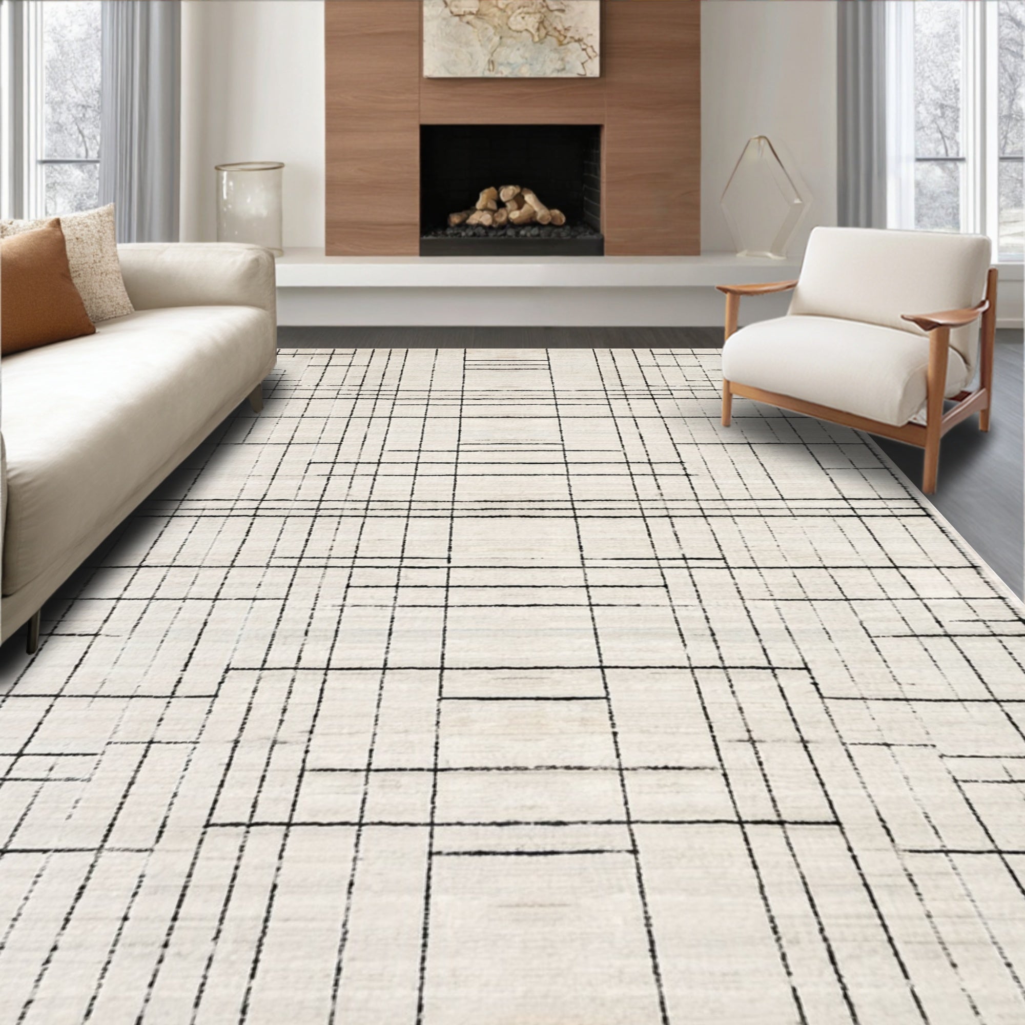 Chic Black White Striped Modern Geometric Area Design(Beige)