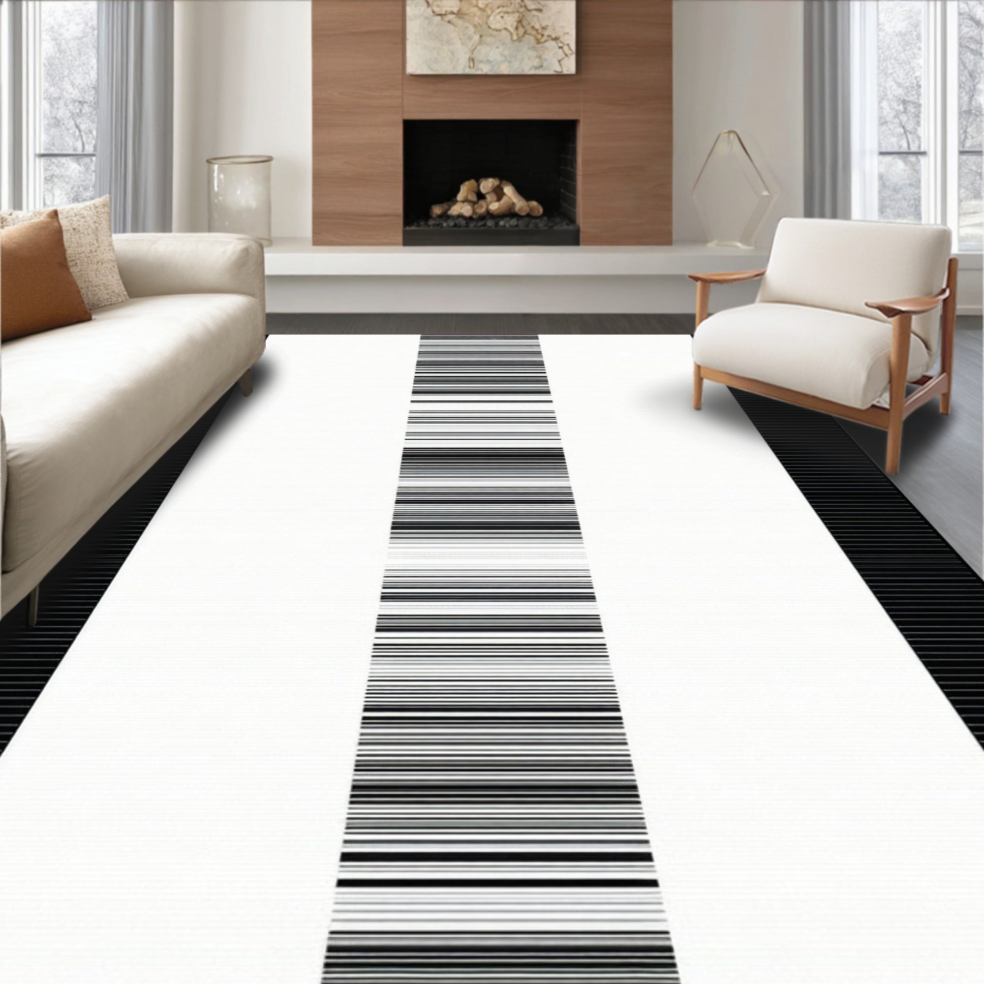 Modern Geometric Striped Area for Entryway and Porch(Black)
