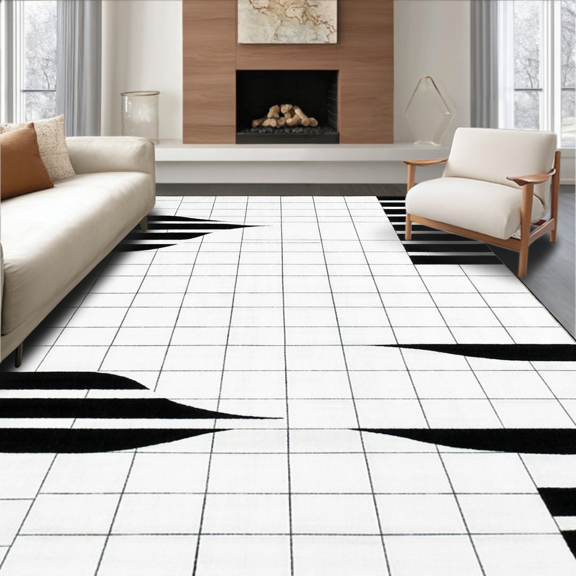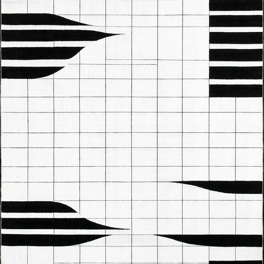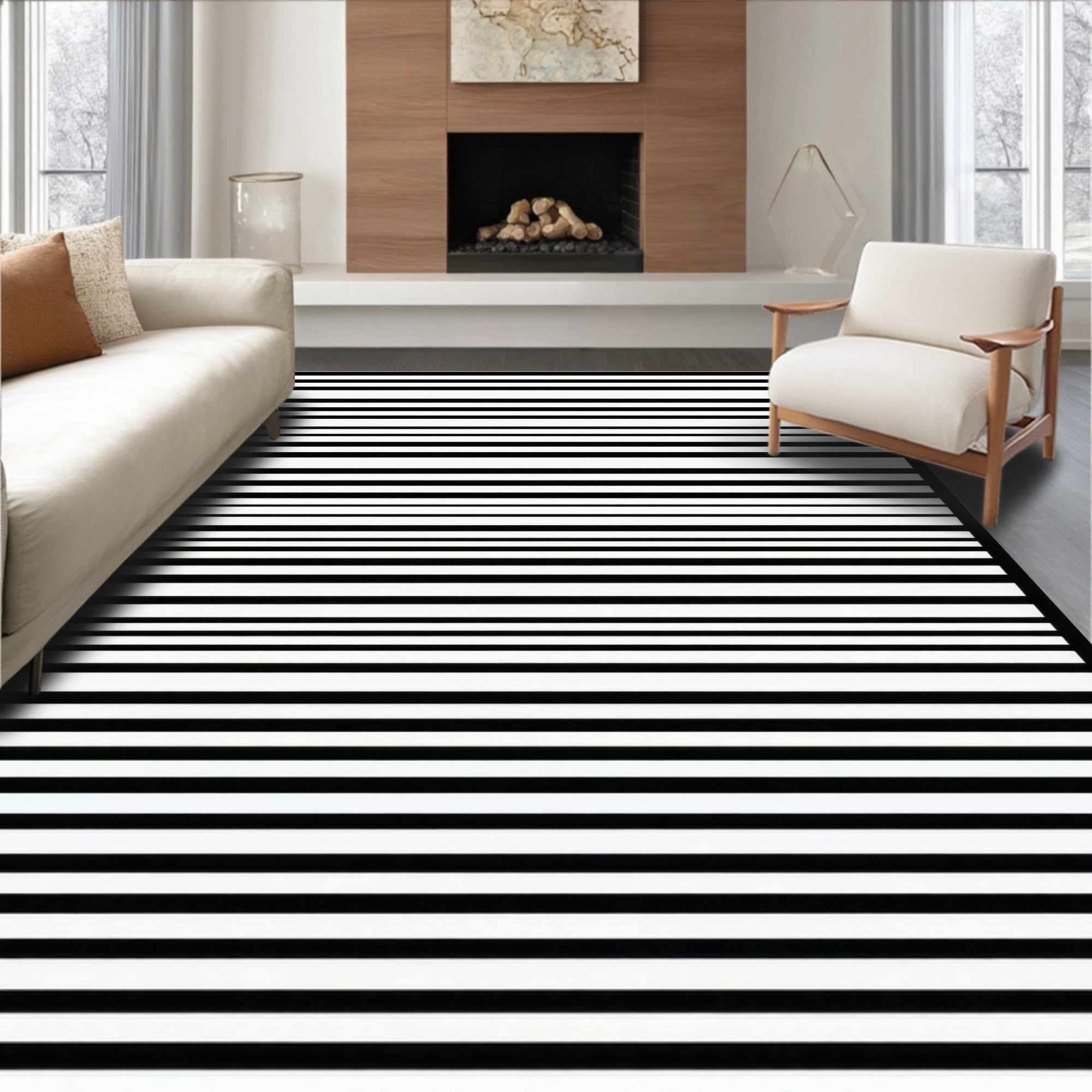 Art Deco Black And White Striped Decorative Floor Covering(Gray)