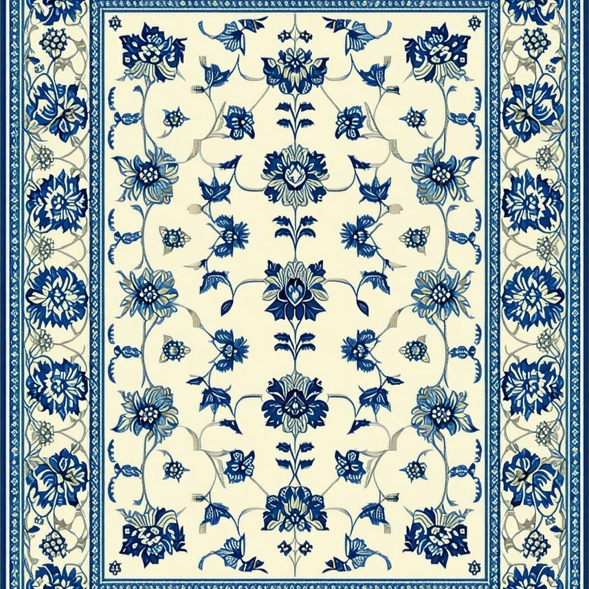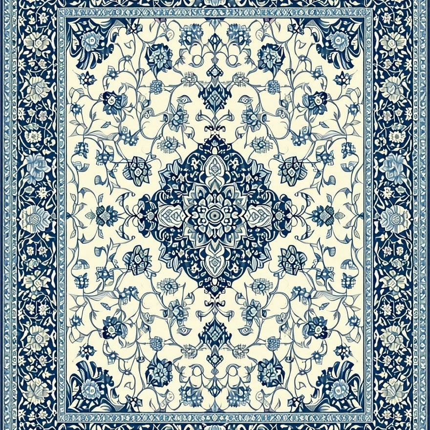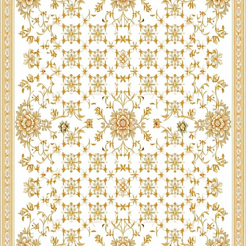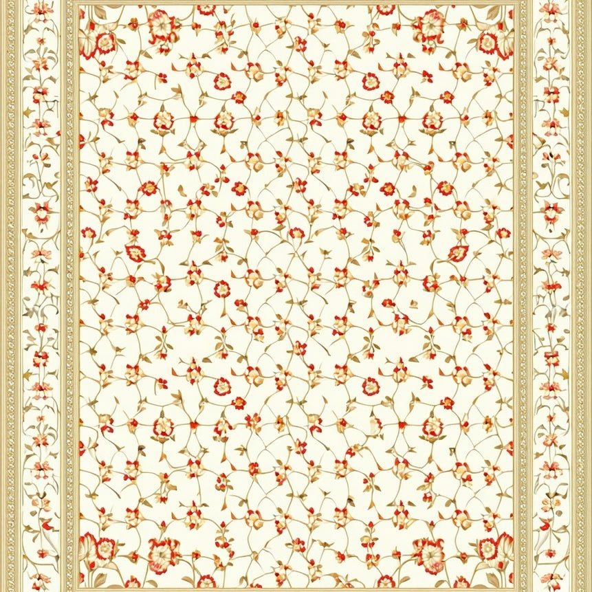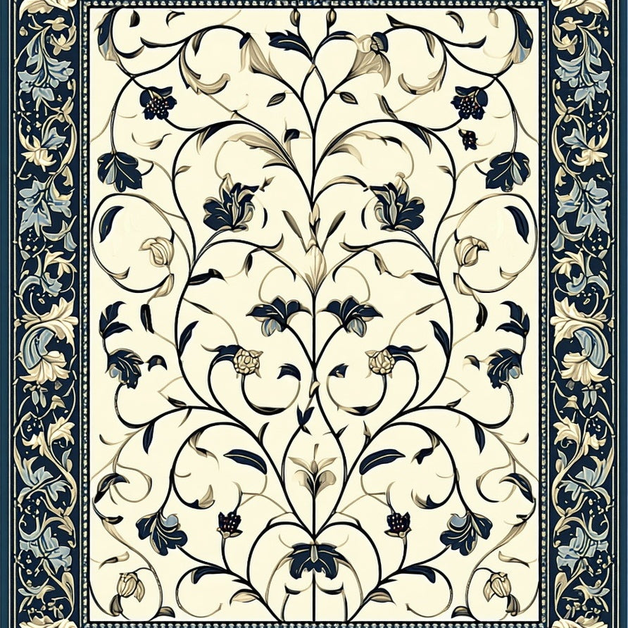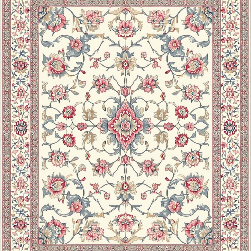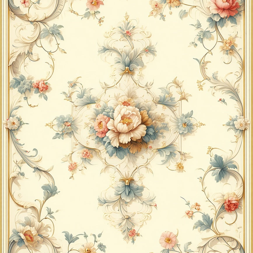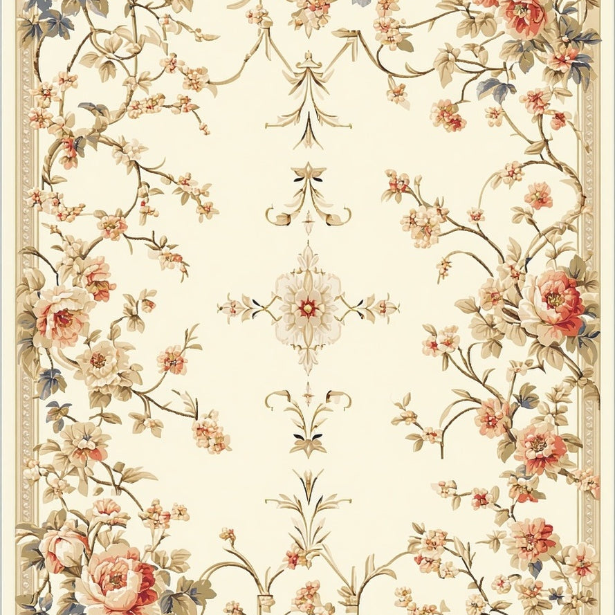 and Beige Vintage Floral Medallion with Delicate Details(Ivory)