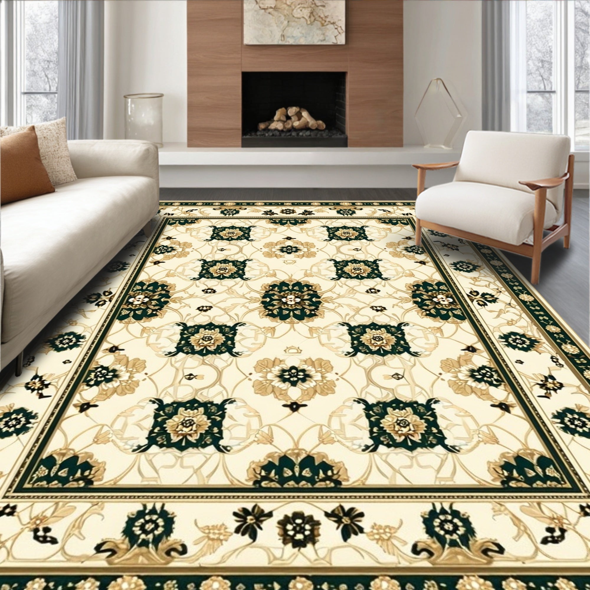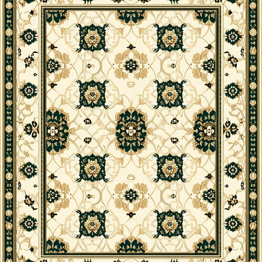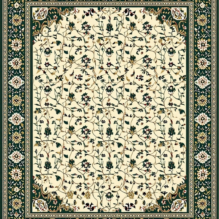 Country Flair Beige & Green Bordered Patio(Ivory)