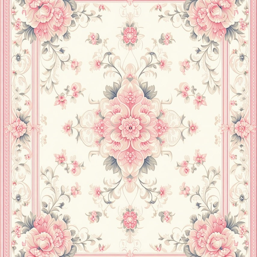 and Stylish Grey Beige with Elegant Floral Motifs(Ivory)
