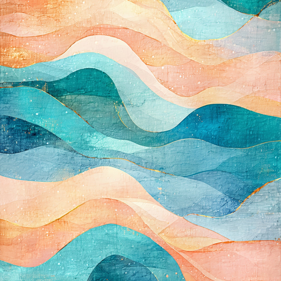 Sunset Watercolor Abstract with and Coral Swirl(Orange)