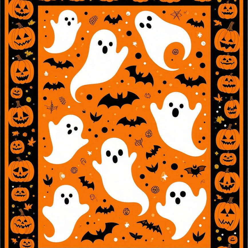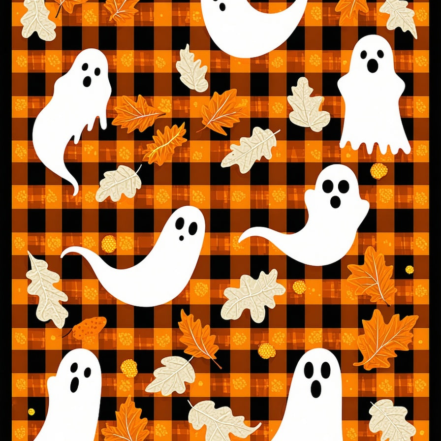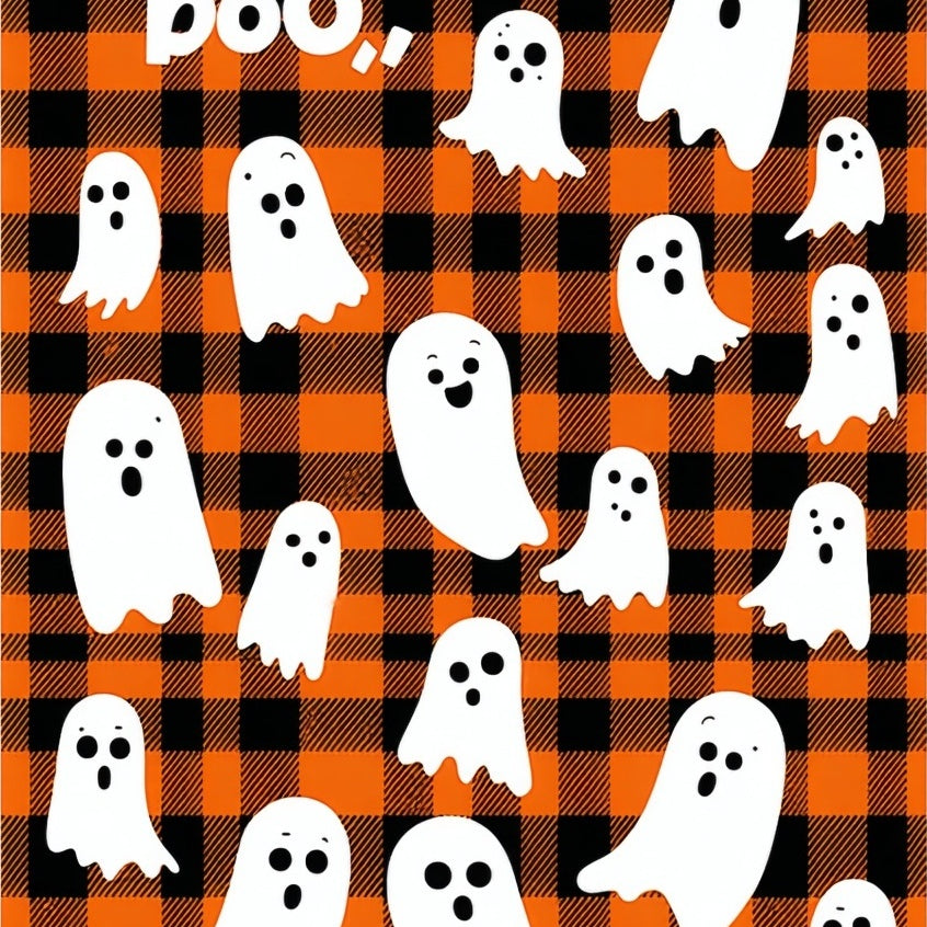Charming Halloween Ghost Doormat with Matching Plaid(Orange)