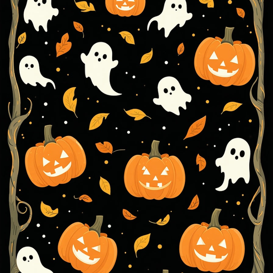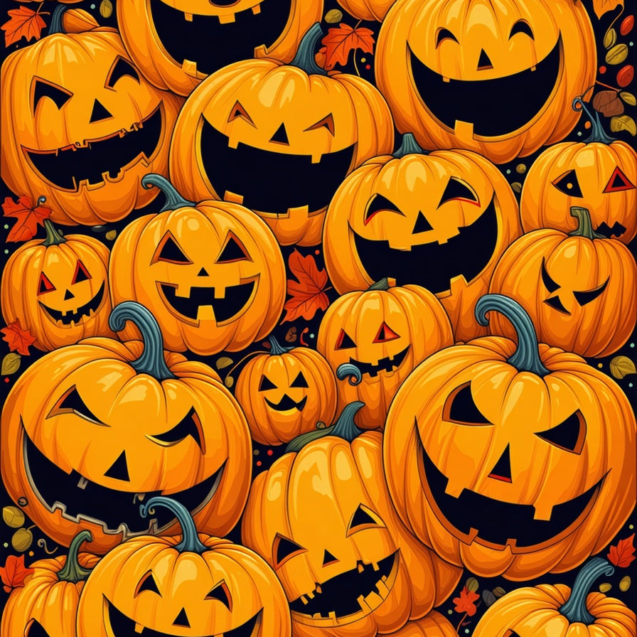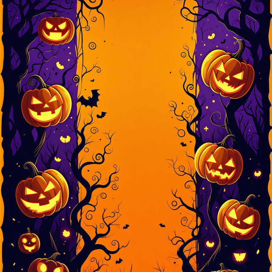 Autumnal Halloween with Pumpkin Faces and Creepy Silhouettes(Orange)