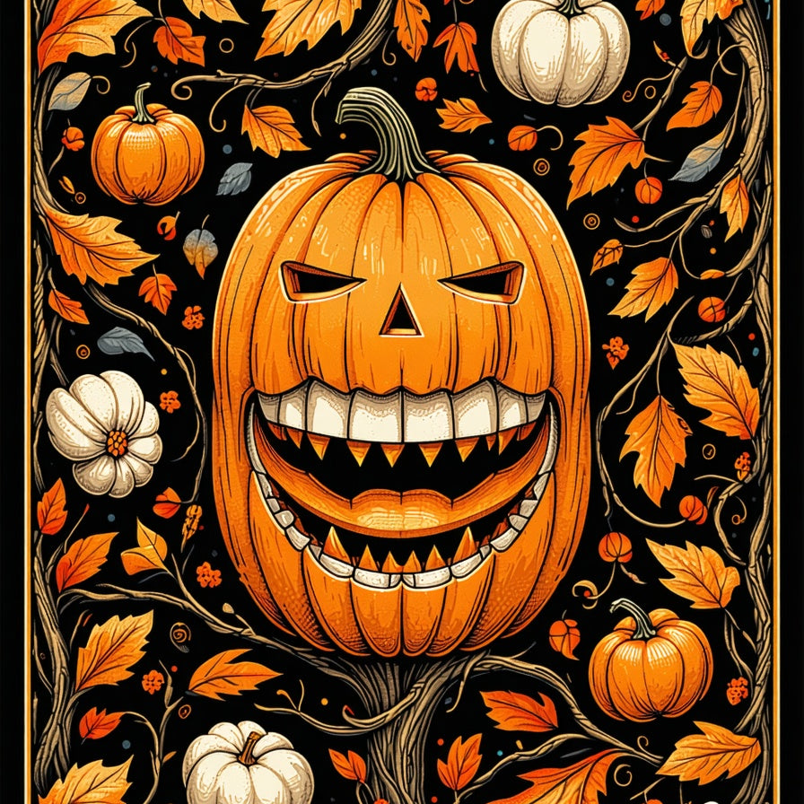 Autumn Harvest Pumpkin and Twisted Vine with Spooky Halloween Gothic Flair(Orange)