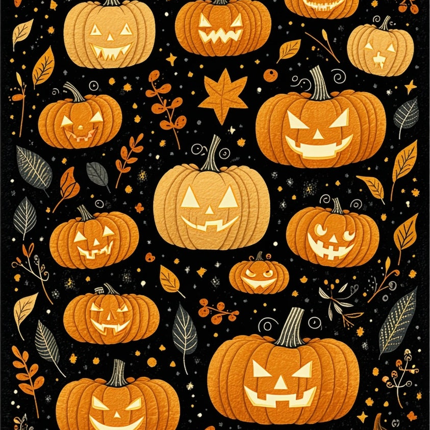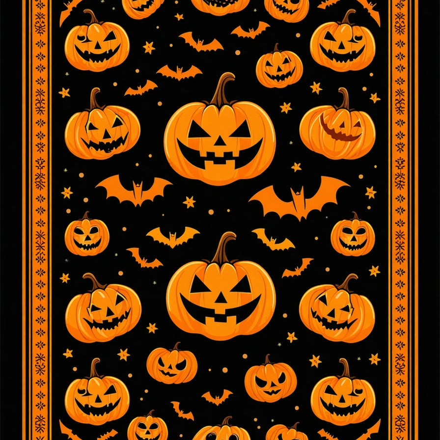 Spooky Pumpkin Patch Halloween with Gothic Black and Orange Motifs(Orange)