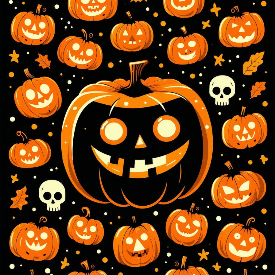 Charming Halloween Themed Round with Pumpkin and Skull Motifs(Orange)