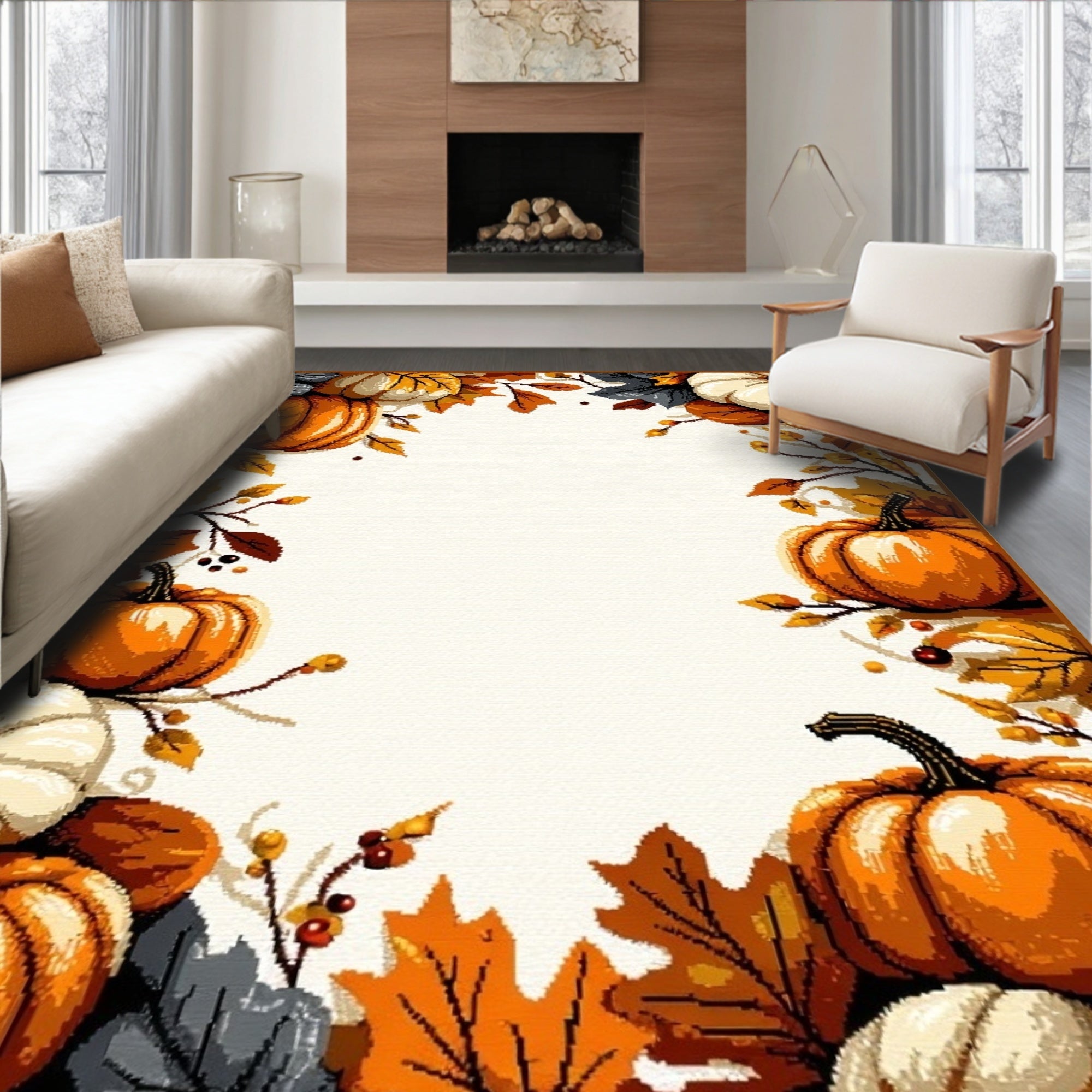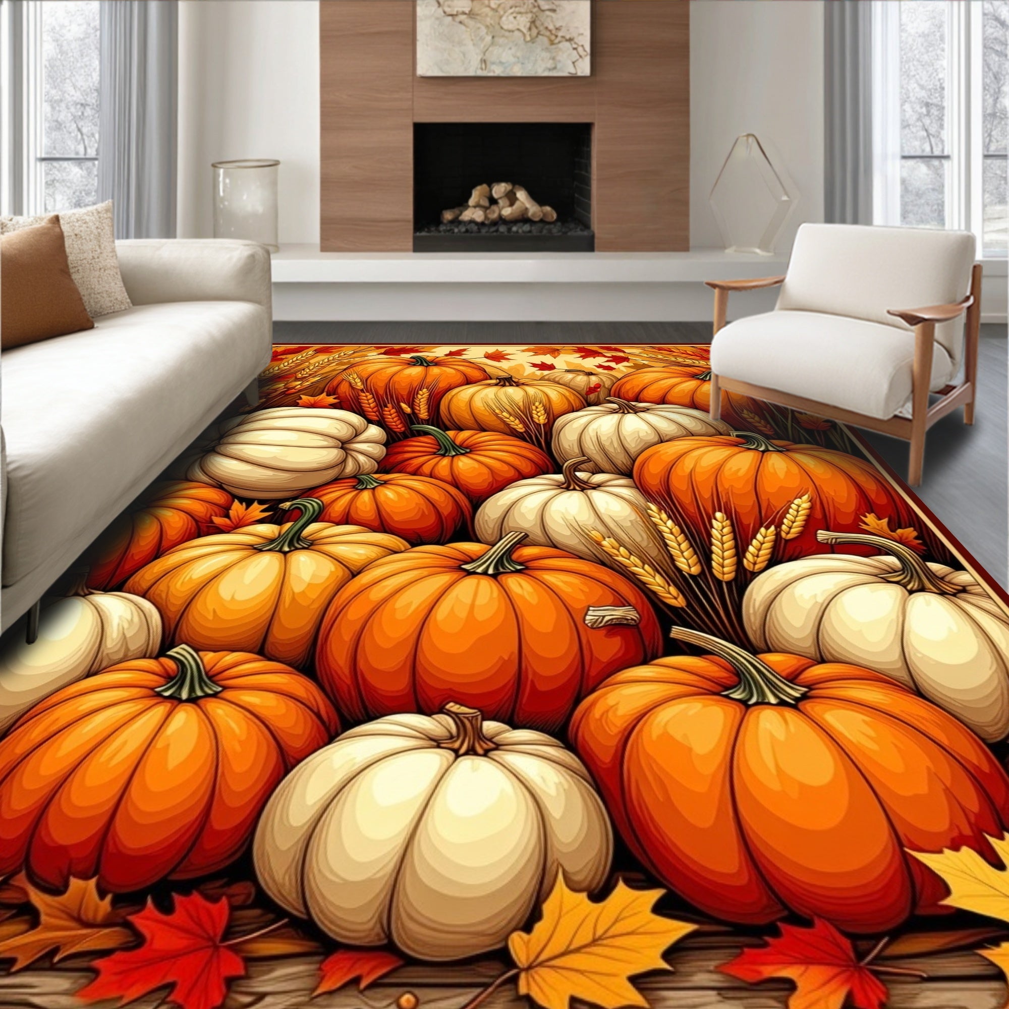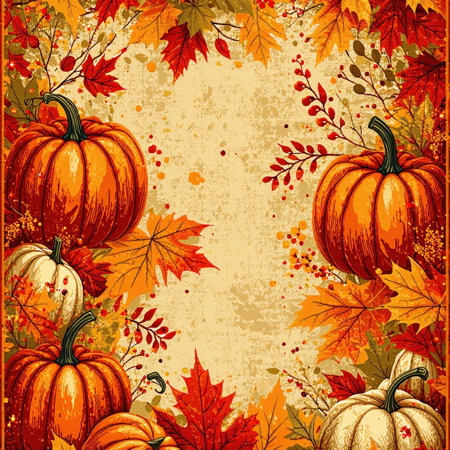 Traditional Harvest Foliage Design Floor Covering(Orange)