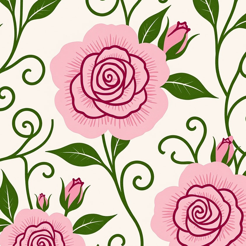 Vintage Rose Blossom Array with Delicate Petal Motif and Graceful Flourish(Pink)