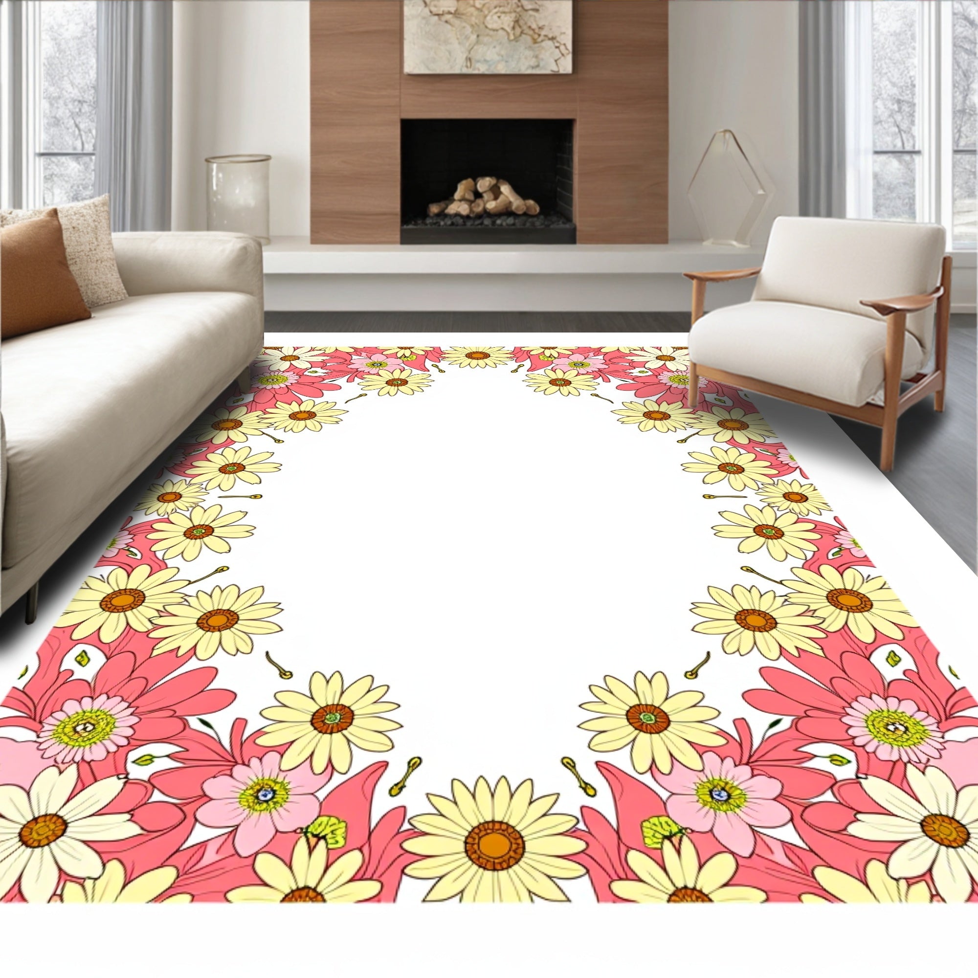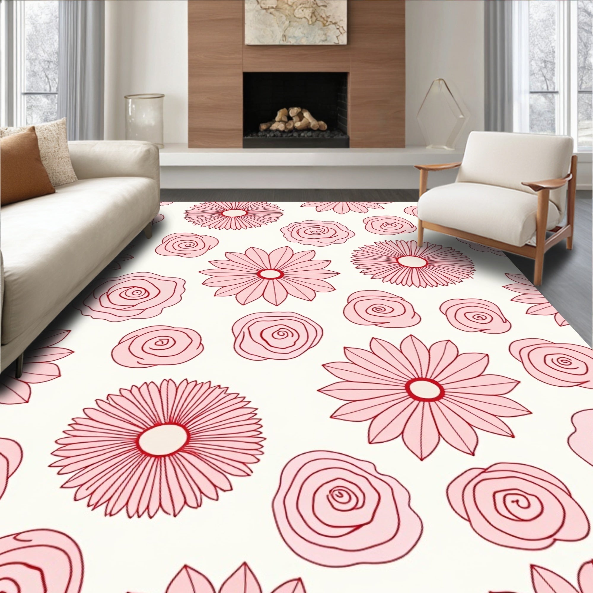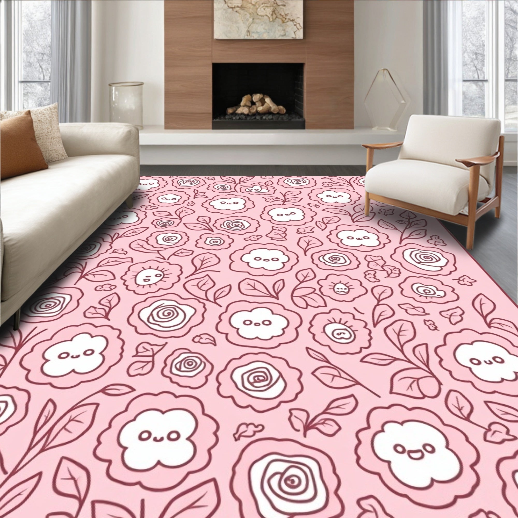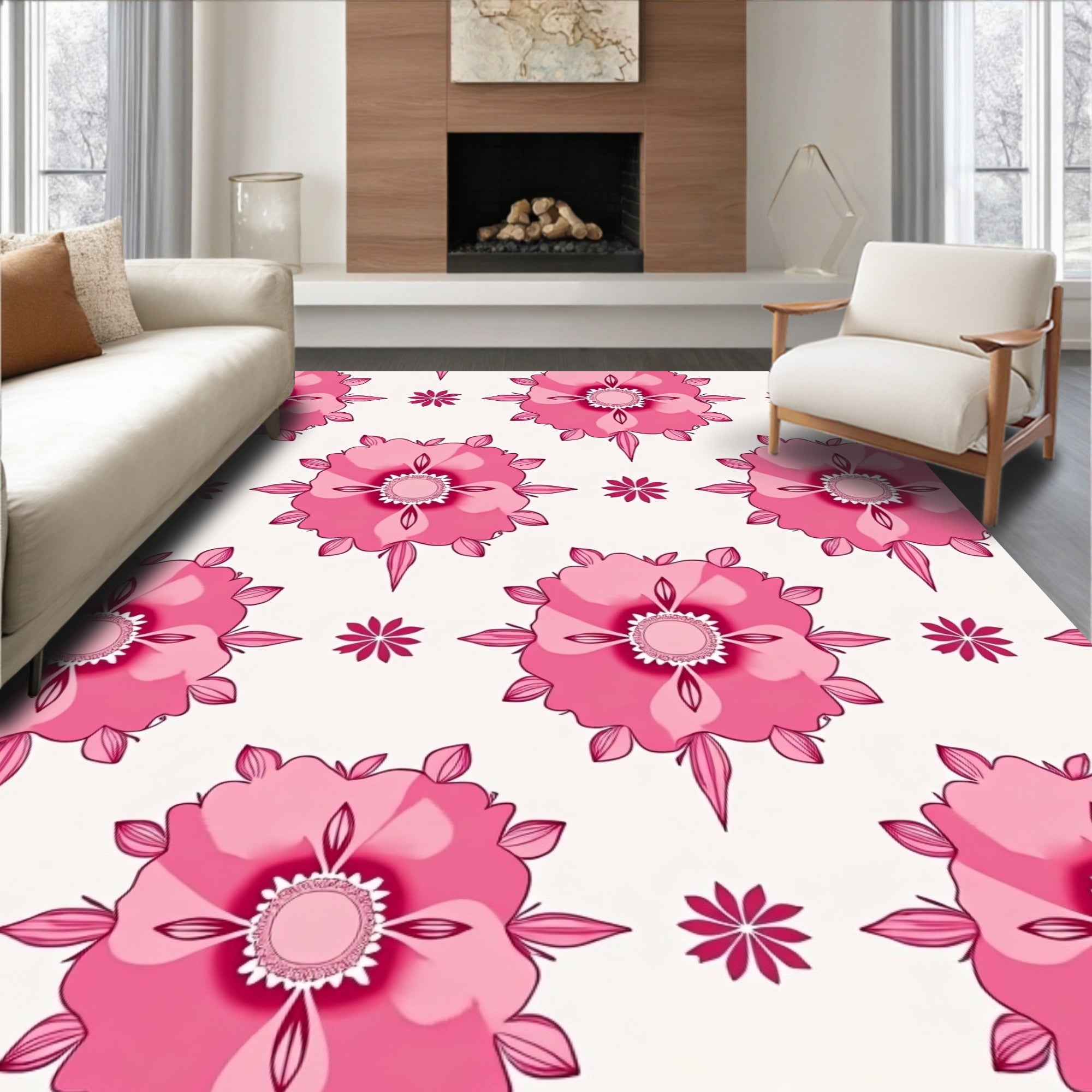 Enchanted Meadow Flower Slip Resistant Holiday Floor Cover(Pink)