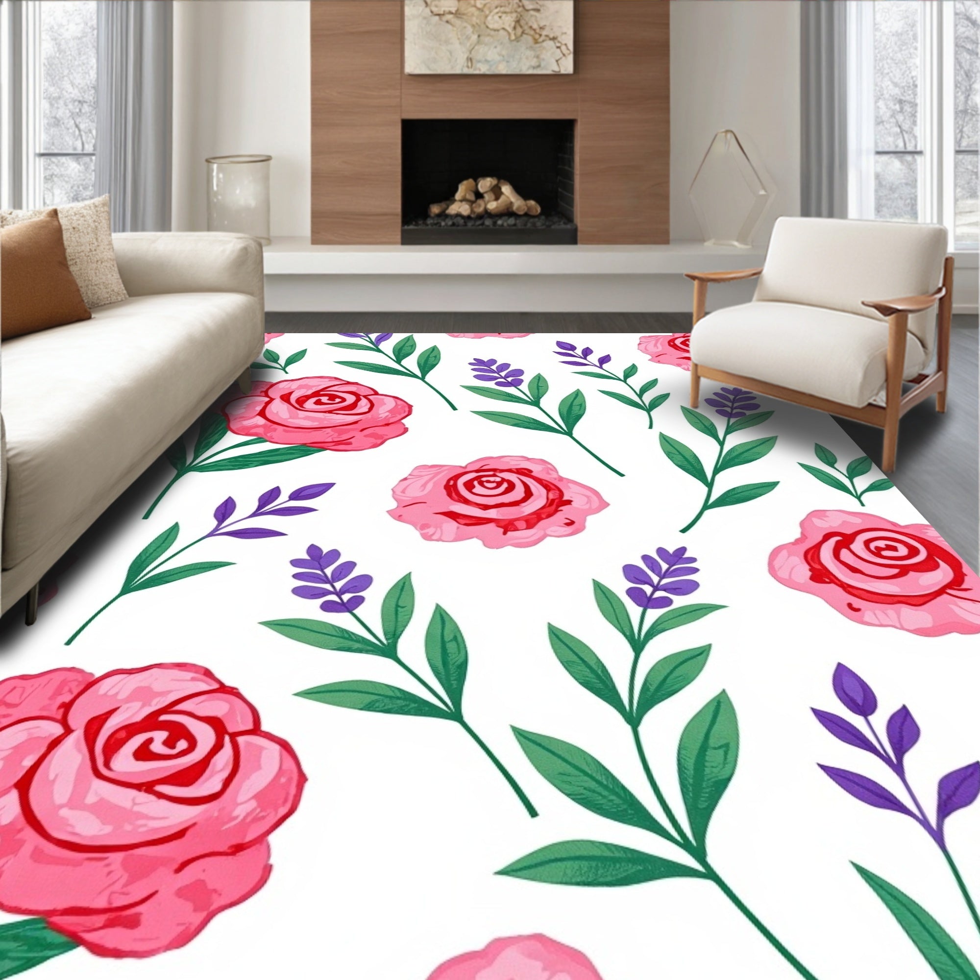 Blooming Rose Garden Anti Slip Floor with Delicate Petals(Pink)