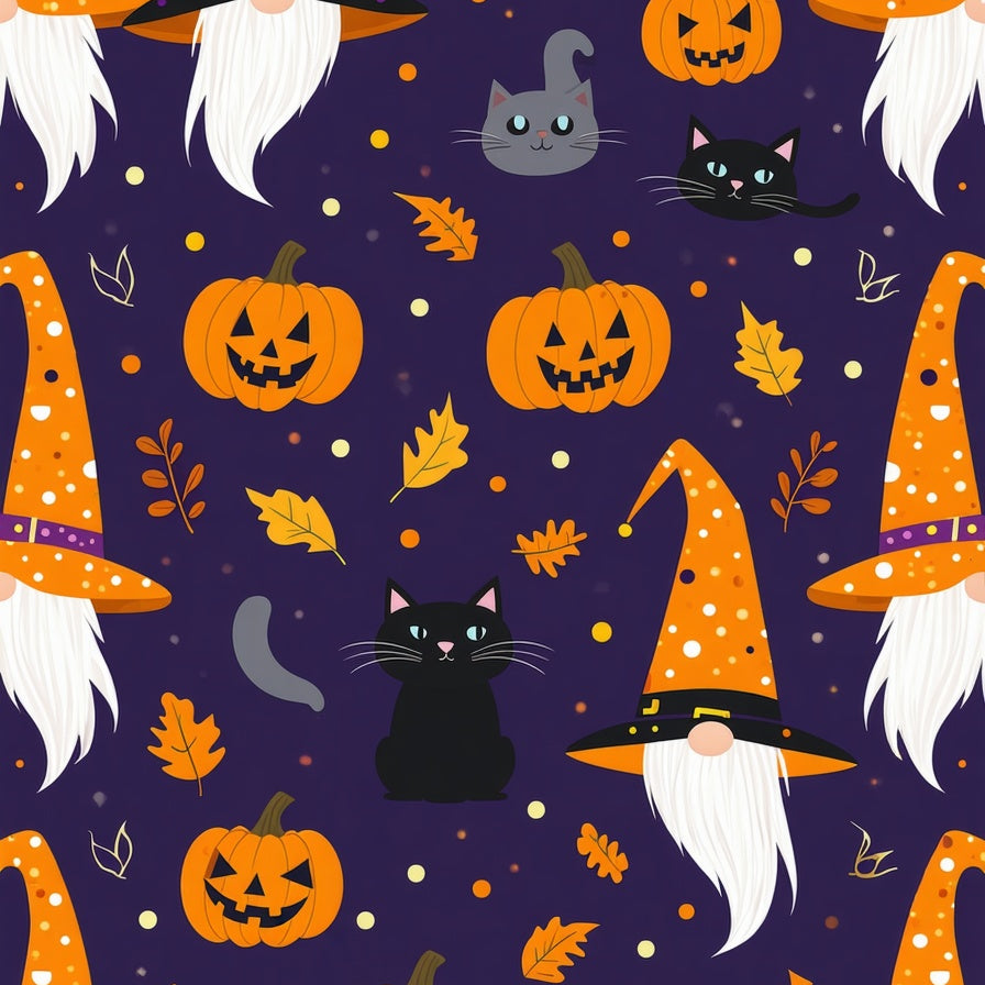 Spooky Harvest Festive Cat Gnome Entrance Autumn(Purple)