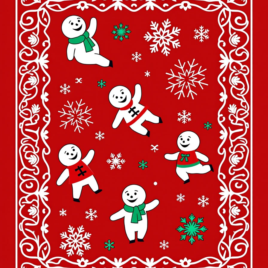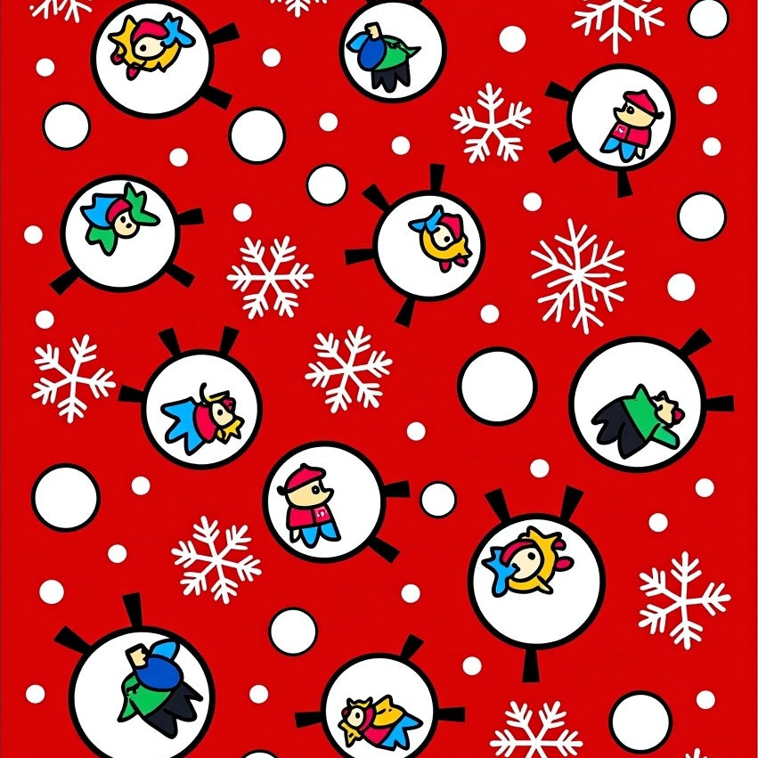Festive Snowflake Cascade With Whimsical Winter Characters(Red)
