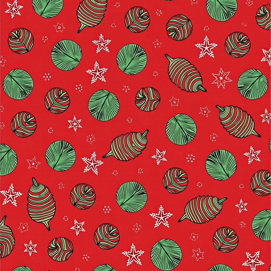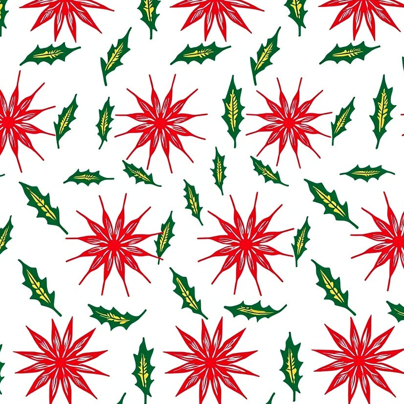 Festive Interlocking Starburst and Holly Leaf Patterned Art(Red)
