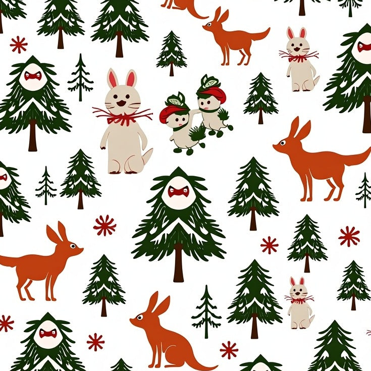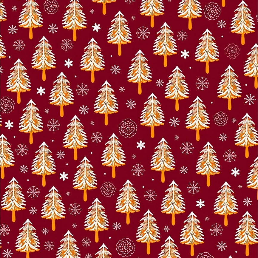 Classic Winter Pine Forest with Stylized Trees and Drifting Snow Motifs(Red)