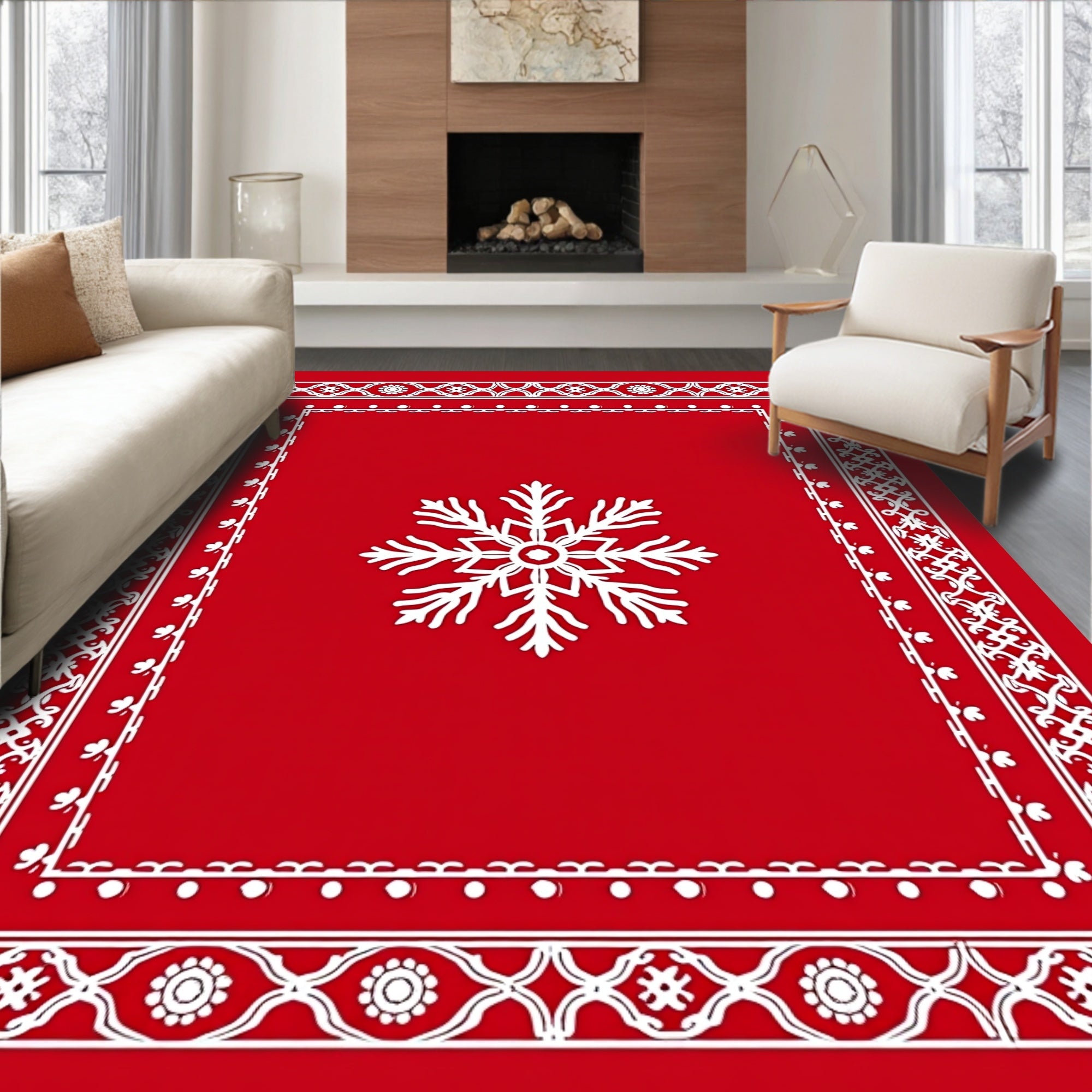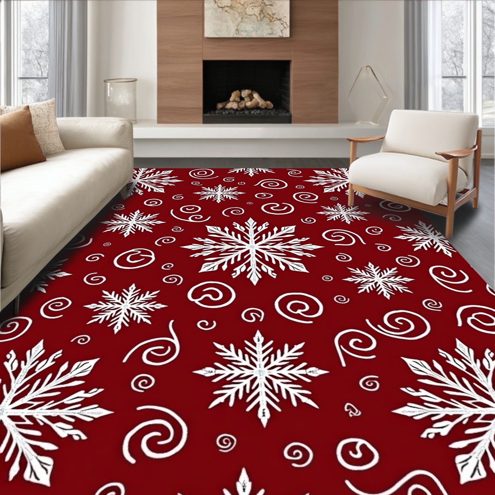 Winter Swirling Snow Crystal Motif Decorative Floor(Red)