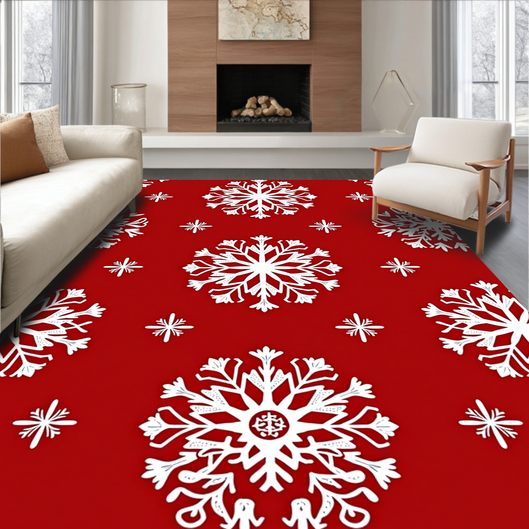 Festive Snowflake Holiday Decoration Pathway Tapestry(Red)