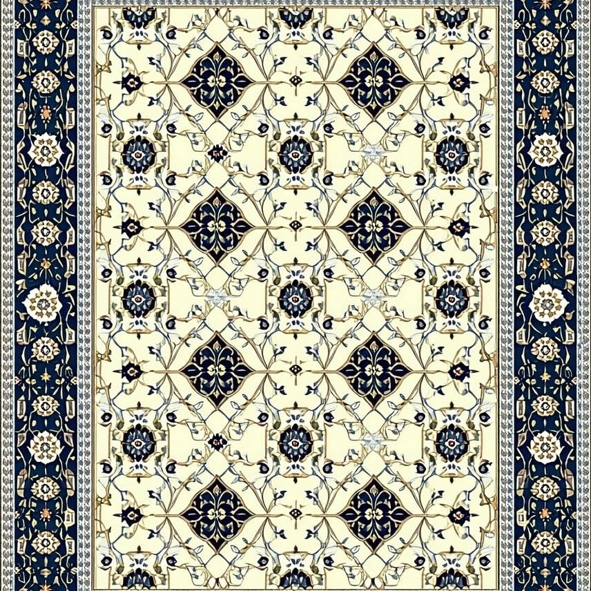 Waterproof Trellis Design Navy and Beige Patio(Ivory)