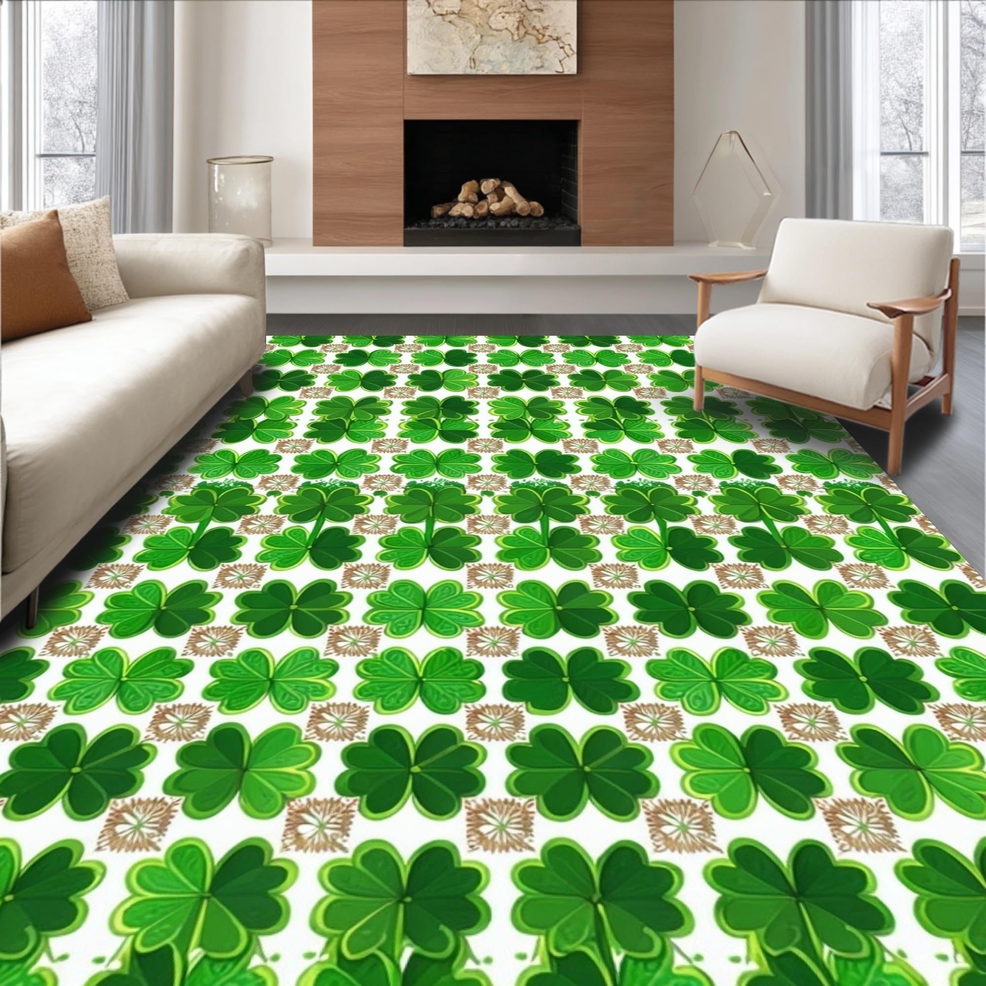Whimsical Clover Patterned Welcome Mat(Green)