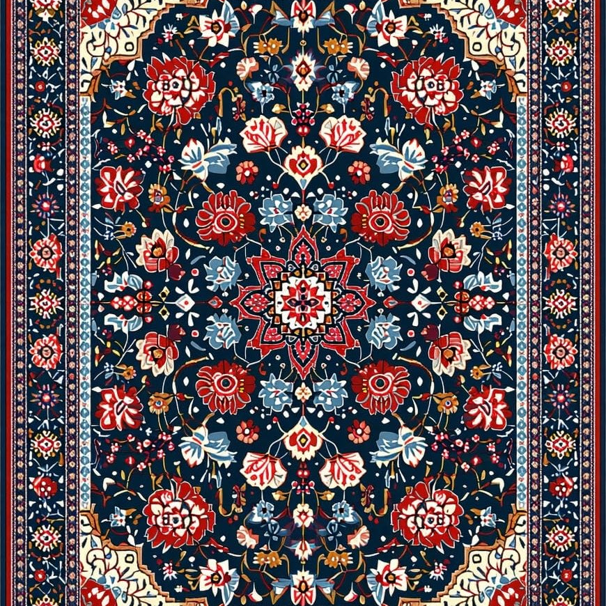 Rustic Dark Blue Flower Motif(Blue)