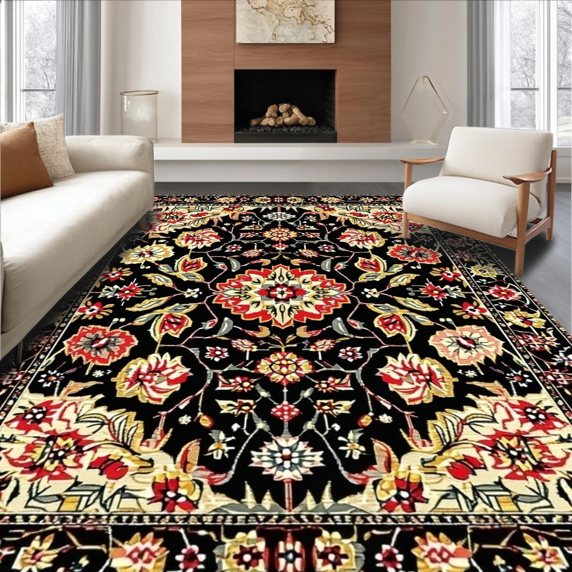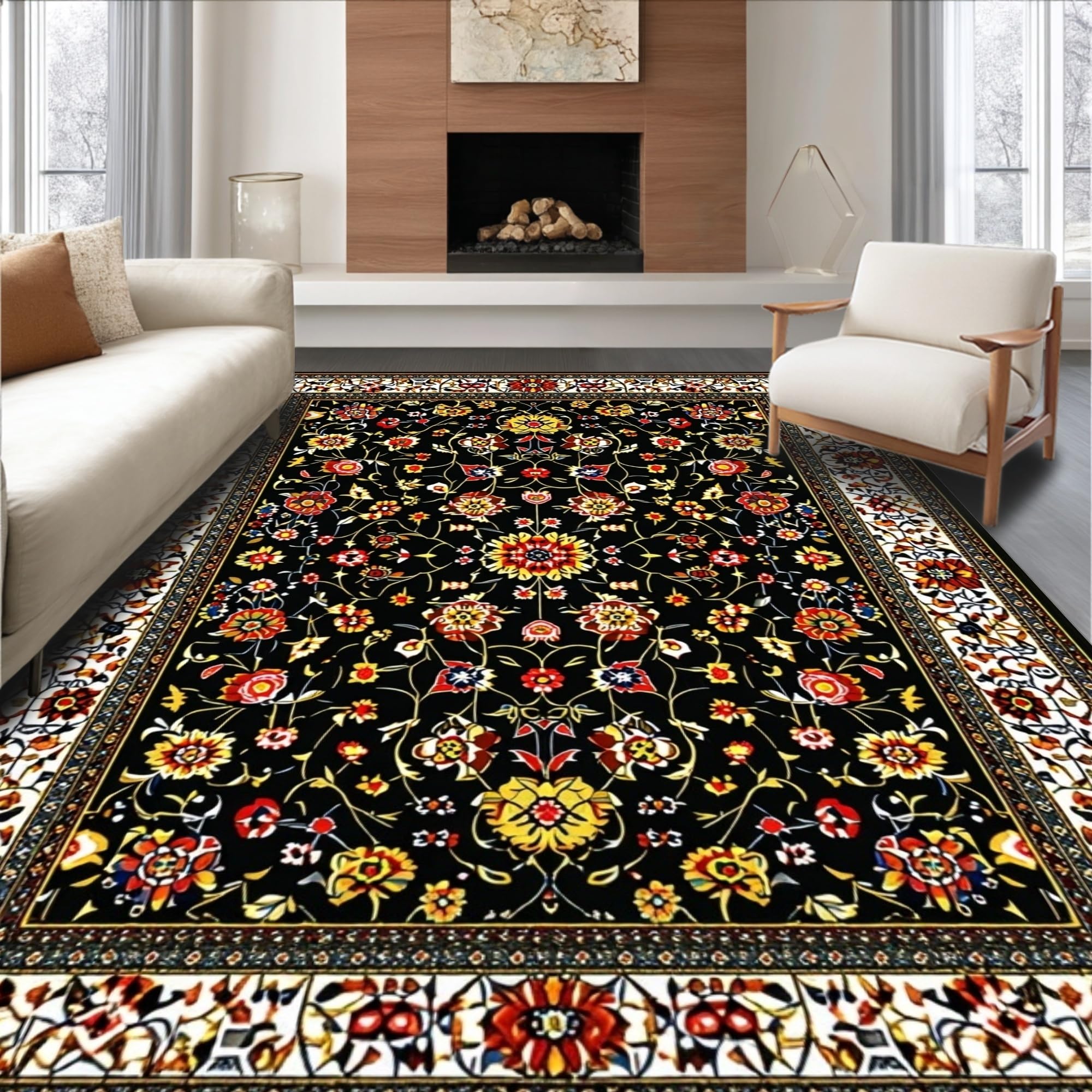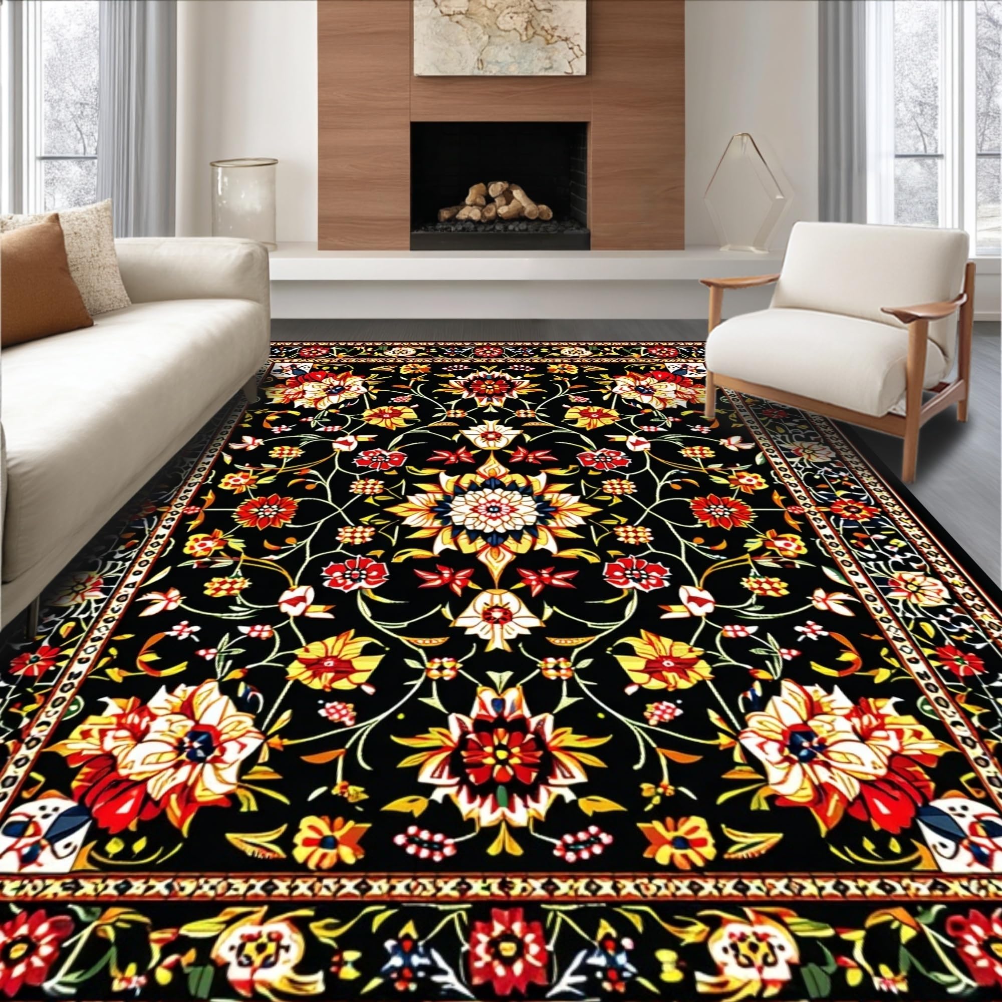 Sophisticated Black Floral Accents(Black)