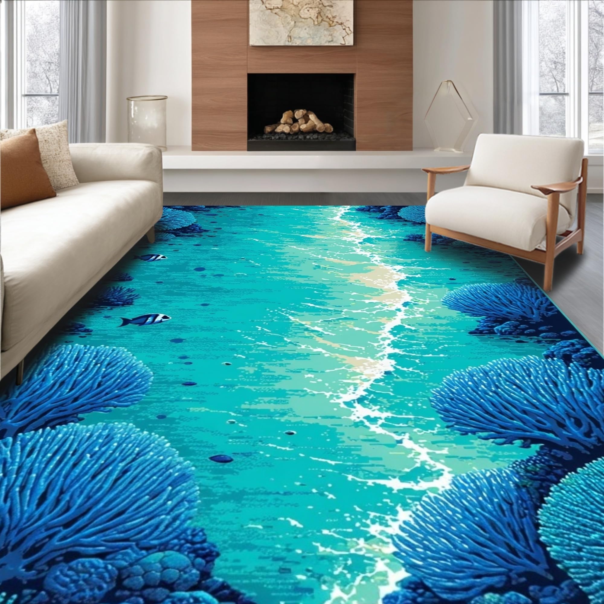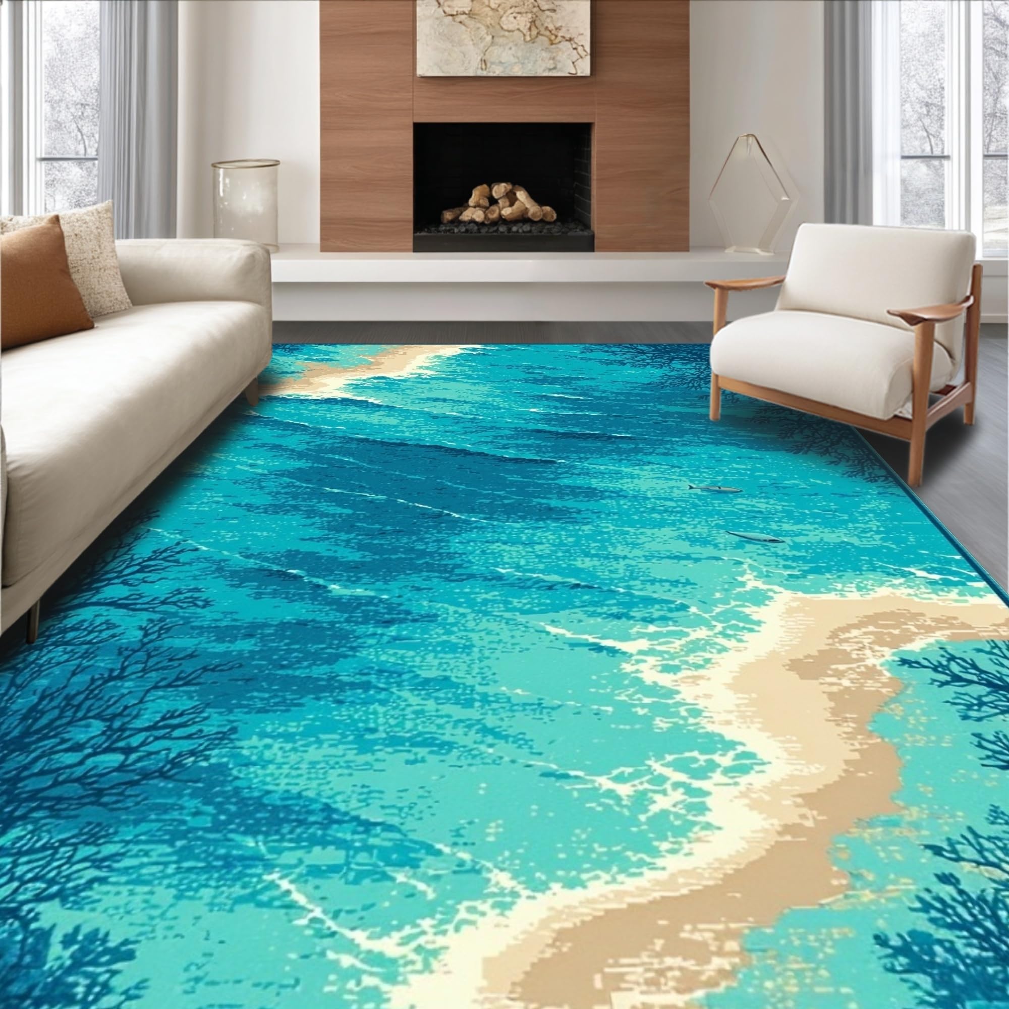 Modern Sea Life Patterned Accent(Blue)