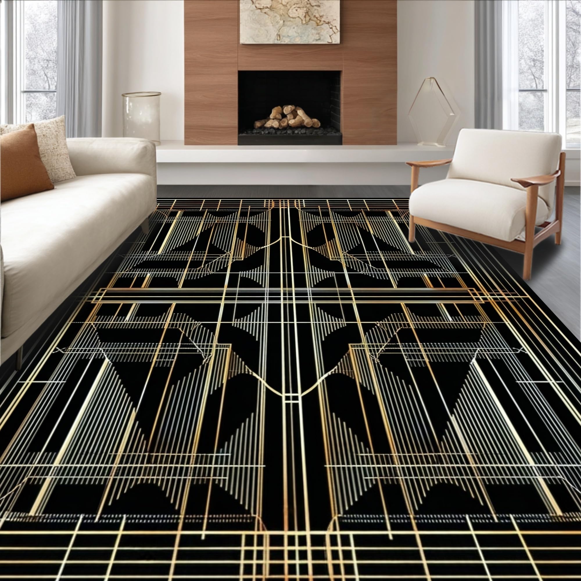Dynamic Black Gold Abstract Geometry(Gold)